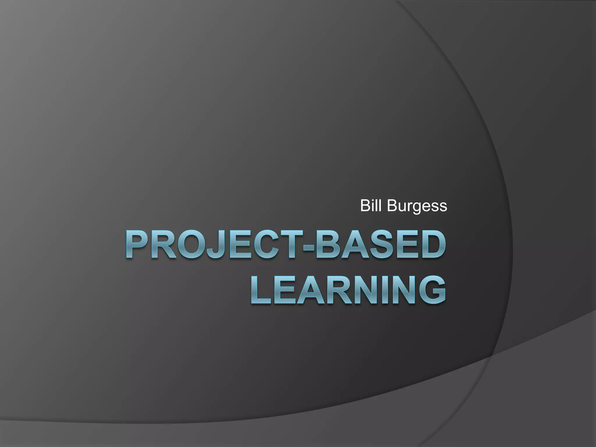 Project-Based Learning (PBL) is an instructional strategy that focuses on engaging students in relevant content to solve real problems. It benefits students by developing their 21st century skills as teachers take a coaching role and students drive their own instruction. A common PBL format introduces the project, provides a rubric, has students generate a know/need to know document, includes project work and lectures/labs/homework, and culminates in a student-created product and presentation. Important aspects are the know/need to know document that evolves throughout, and ensuring there is always a presentation component. Resources for PBL include the Buck Institute for Education and New Tech Network websites.