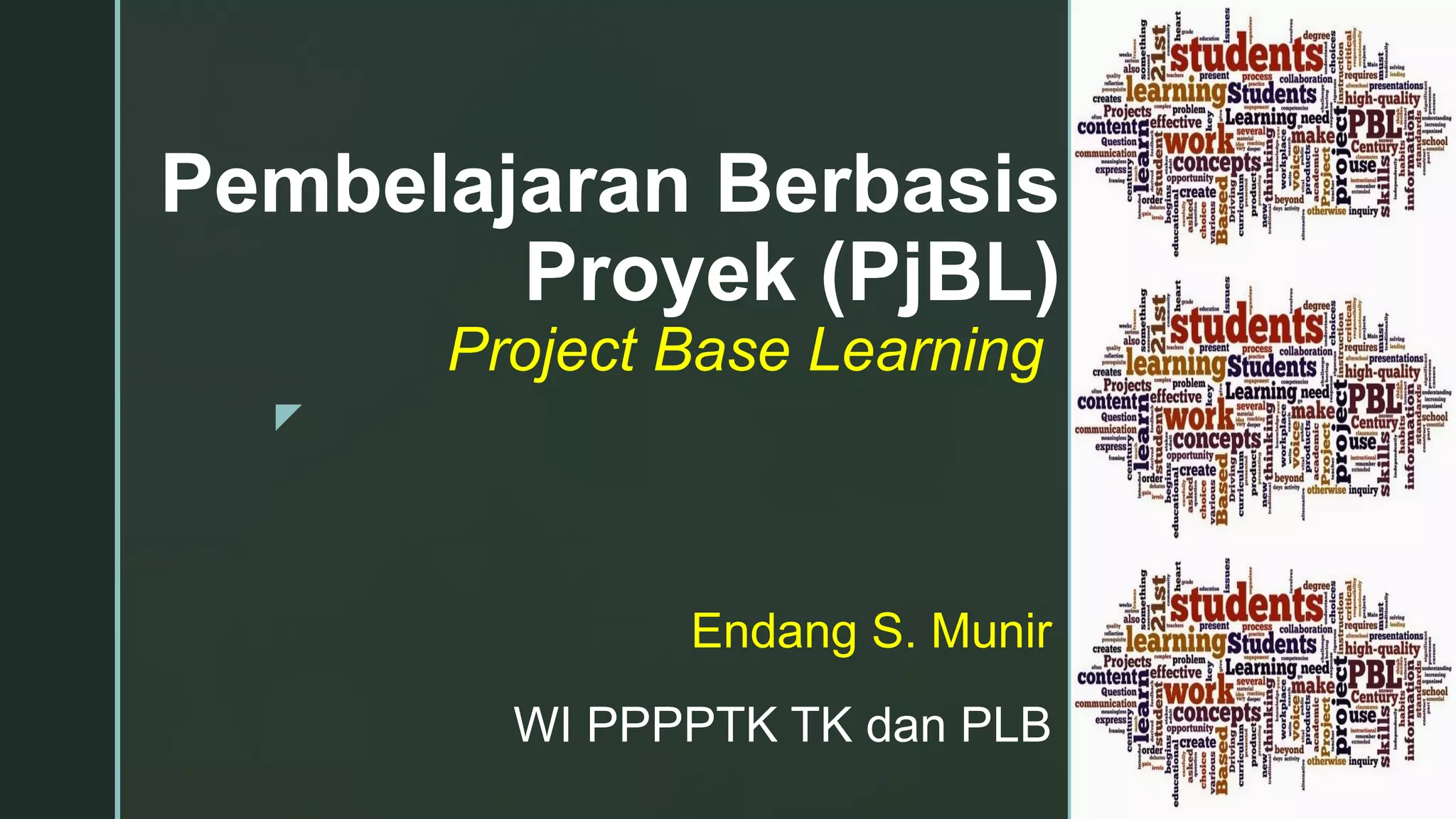 Dokumen tersebut membahas tentang pembelajaran berbasis proyek untuk anak tunanetra. Pembelajaran berbasis proyek adalah pembelajaran yang melibatkan pengerjaan suatu proyek terkait dengan penerapan pengetahuan dan keterampilan secara kontekstual. Prinsip-prinsip pembelajaran untuk anak tunanetra mencakup memperhatikan perbedaan individu, pengalaman langsung, menggunakan indera yang masih berfungsi, guru sebagai f
