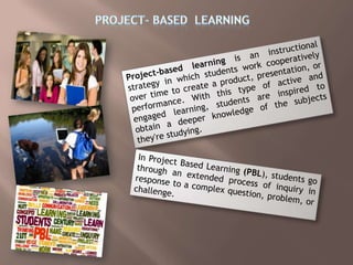 1. Project-based learning involves students shaping projects to fit their interests, conducting research from multiple sources, and presenting their results.