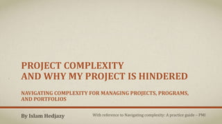 The document discusses project complexity and its management, highlighting the factors impacting projects such as human behavior, organizational structure, and diverse stakeholder agendas. It emphasizes the importance of effective communication, risk analysis, and continuous complexity assessment to navigate challenges in project management. Additionally, it provides practical solutions and scenarios for addressing complexities that arise during project execution.
