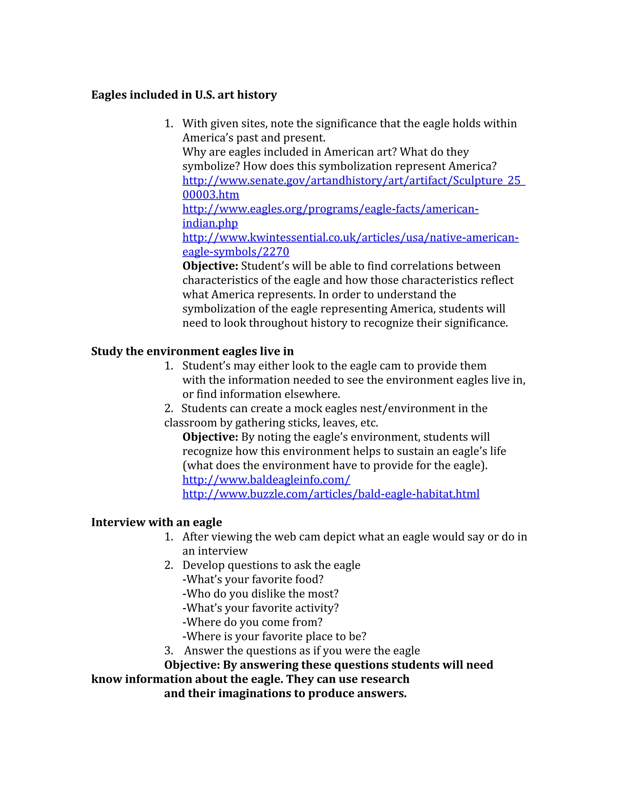 3) Research how eagles are represented in American art history and how their characteristics reflect American ideals.
