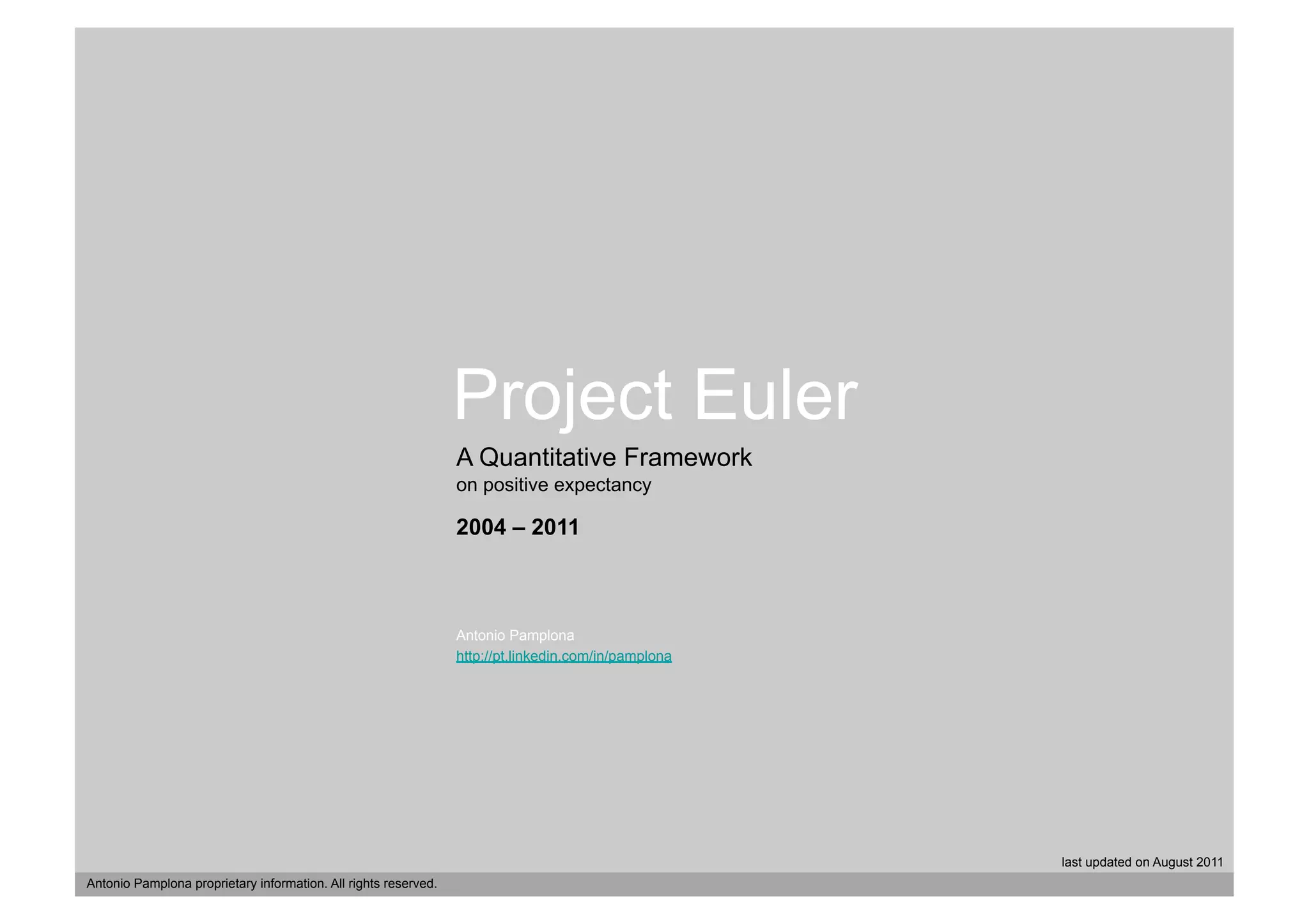 The document discusses Project Euler, a quantitative framework focusing on positive expectancy in financial markets from 2004 to 2011, highlighting the shift from human to machine-based decision-making. It outlines the principles and approaches taken, such as leveraging behavioral finance and automated execution to exploit market inefficiencies, specifically in the context of the German DAX index. The text also reviews the performance and statistical analysis of these strategies compared to conventional market theories.