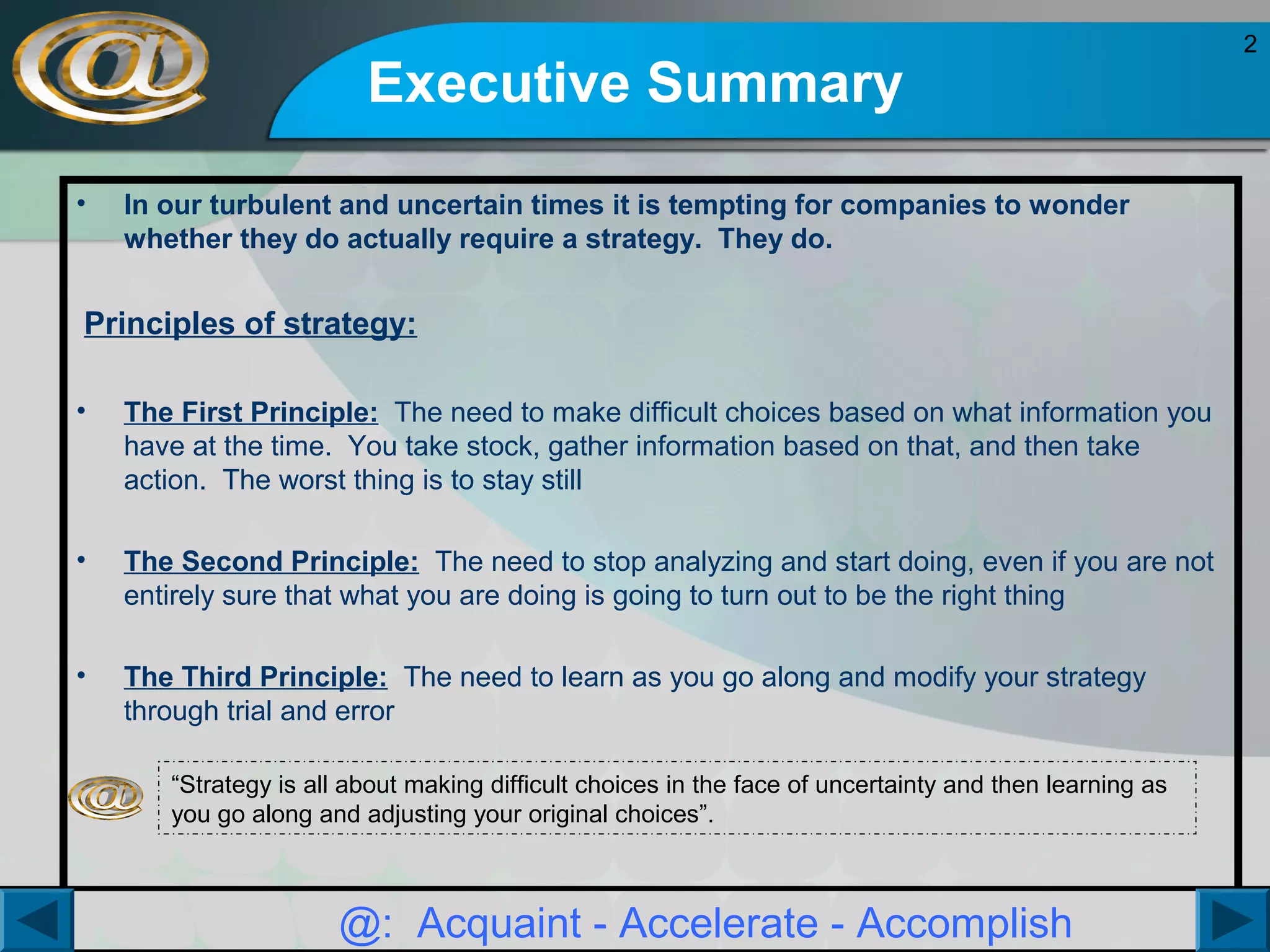 The document discusses operational excellence and outlines key principles for achieving it. It emphasizes making difficult choices based on available information, taking action even with uncertainty, and adjusting strategies through learning. It also stresses the importance of developing a differentiated strategy and cites examples where companies succeeded by focusing on new competitive dimensions rather than competing on existing terms. Overall the document provides a framework for operational excellence through strategic management, Six Sigma methodology, and setting up a measurement system to track performance and drive continuous improvement.