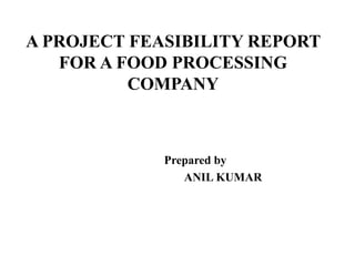 The document is a project feasibility report for a food processing company focusing on maize processing in India. It outlines the current status of the food processing industry, including major production sectors, machinery and equipment costs, financial analyses, and expected plant capacity. The total capital investment required for the project amounts to approximately Rs. 336.21 crores, with anticipated revenues of Rs. 388.25 crores and a profit of Rs. 80.90 crores.