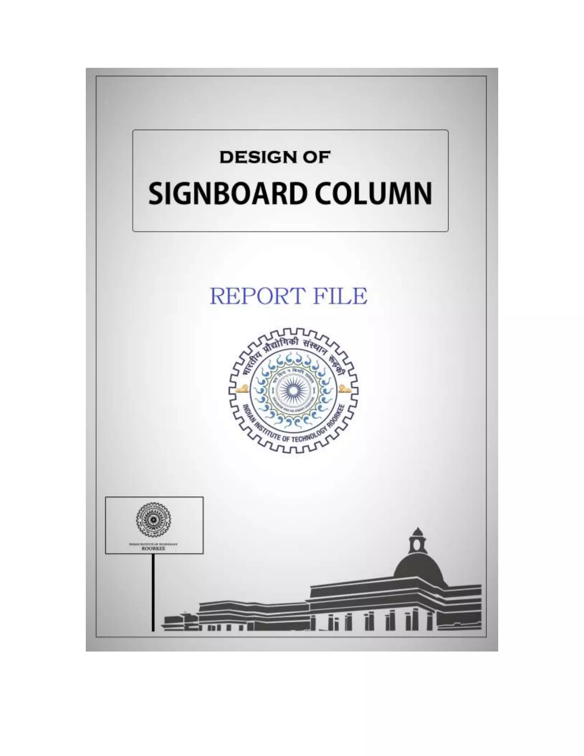 The report details the design of a column for a signboard at IIT Roorkee, including calculations for material selection, stress analysis, and cost estimation. Using SolidWorks and Ansys software, the analysis compares various materials, ultimately determining that aluminum alloy Al 7075 offers the best balance of safety factor and cost. The findings indicate that the most optimal design is a tapered column, with a safety factor of 3.3667 and an estimated cost of $47.575.