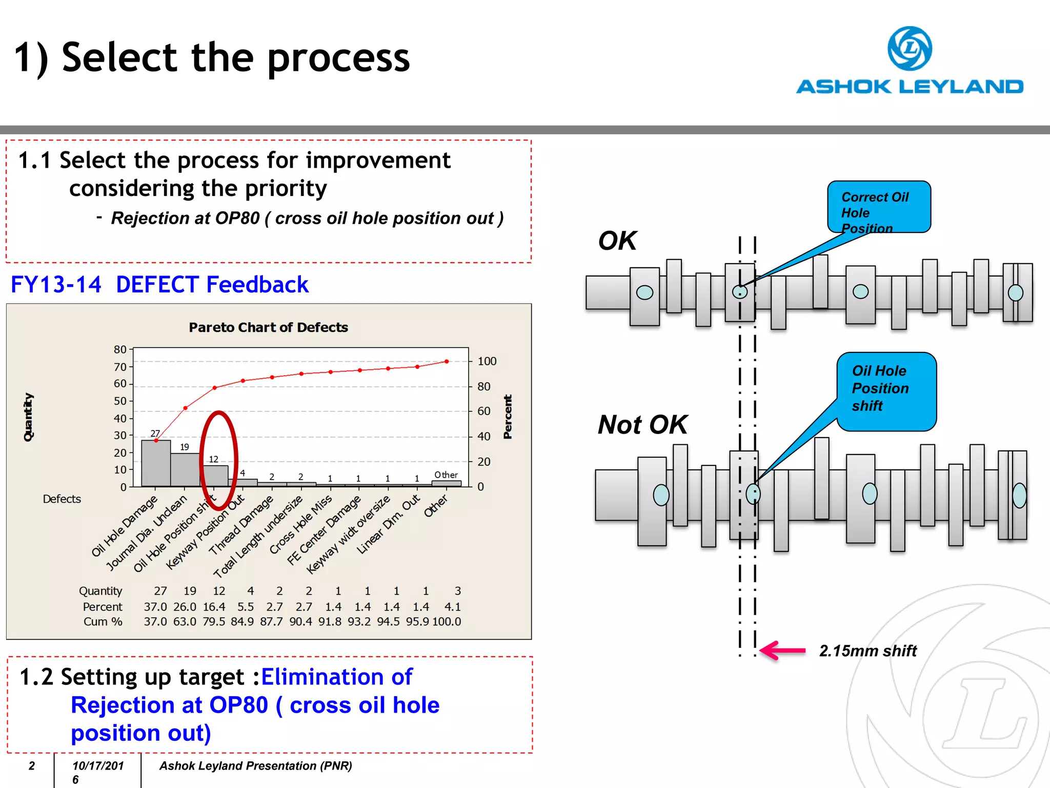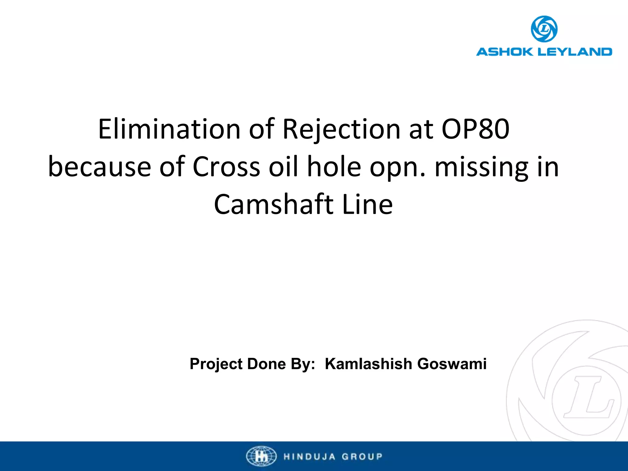 This document summarizes a project to eliminate rejections at Operation 80 due to missing the cross oil hole operation. The project involved: