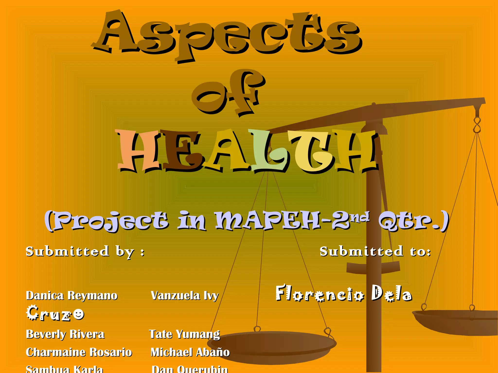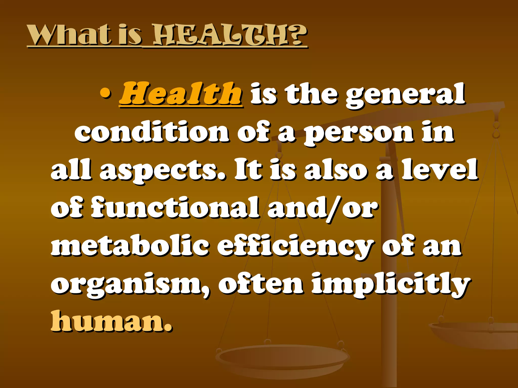 The document defines and describes the six key aspects of health: mental, physical, emotional, social, spiritual, and environmental health. It provides details on each aspect, such as defining mental health as a level of cognitive or emotional well-being, physical health as fitness and overall wellness, and environmental health as the branch of public health concerned with how the natural and built environment can affect human health. The document aims to explain and explore the different dimensions that comprise overall health.