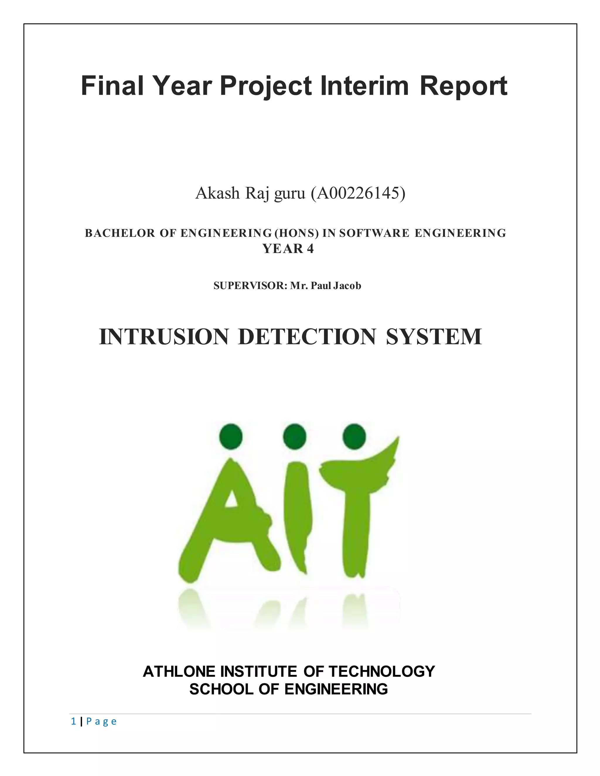 This interim report summarizes the progress made on a project to develop a Java-based intrusion detection system tool. The tool will monitor network traffic by capturing packets from the host machine interface using the Jpcap library. Work accomplished so far includes researching IDS and honeypot technologies, learning to use third party Java libraries, developing a GUI to list interfaces and select one for packet capture, capturing live packet streams, port scanning the selected interface, and storing captured packets to a file. Future work includes improving the GUI, connecting to a NoSQL database, analyzing log files, and implementing honeypots and testing with JUnit. The goal is to create a complete IDS with functionality like interface selection, packet capture, port blocking rules