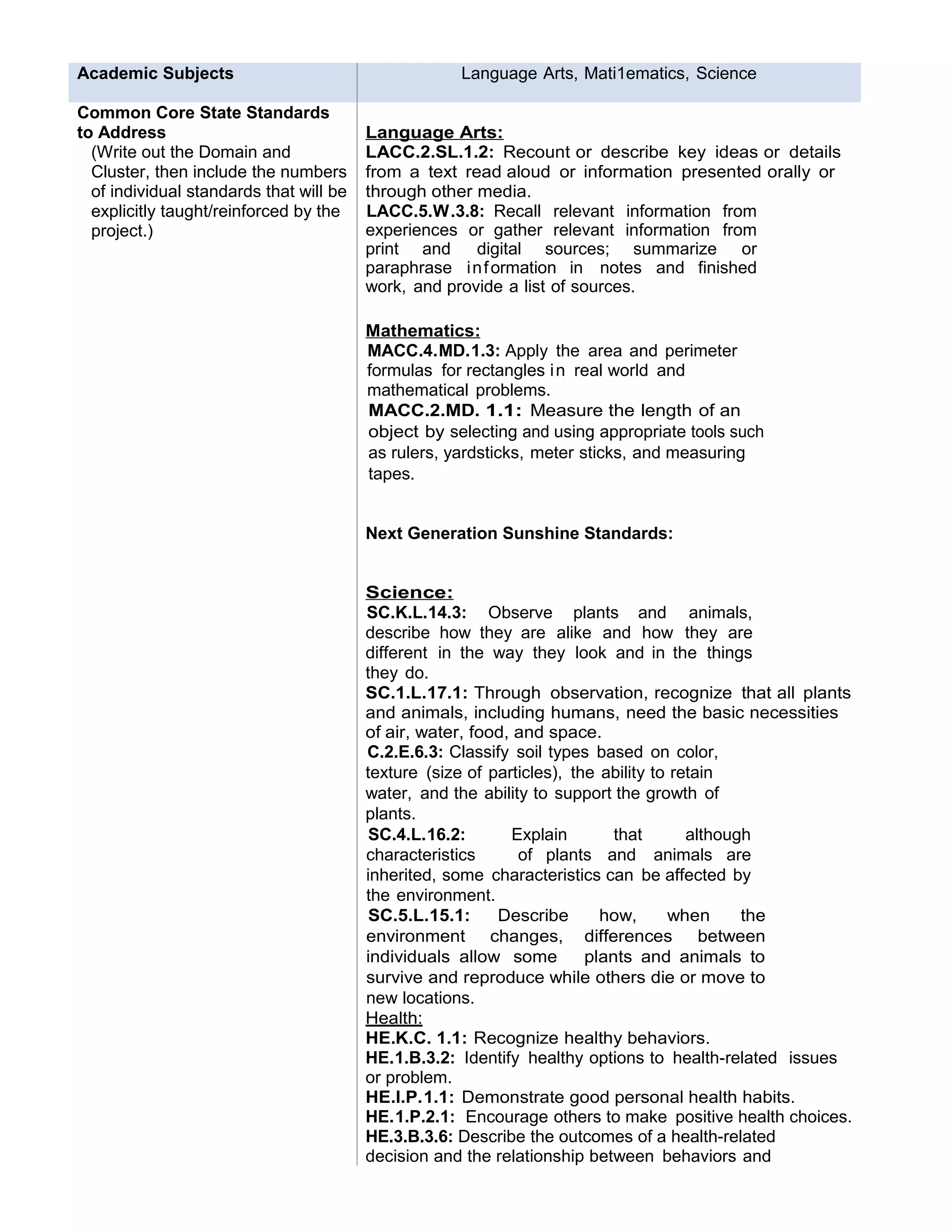 Students will learn about health and the human body through a project called "Getting Healthy, Staying Healthy: My Body and Me!". They will explore how the body works and its different parts through experiments, videos, quizzes and other activities. The goal is to increase knowledge of physical wellbeing and develop a healthy mind and body connection. Students will learn about organs, bones, the senses and more. They will discuss what makes our bodies work and how to take care of themselves. Parents will participate through activities focused on physical fitness and nutrition. The project addresses objectives in language arts, math, science and health to improve students' learning.