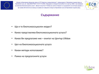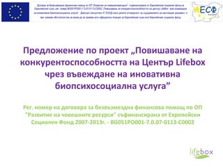 Проект финансиран по ОП "РЧР", ориентиран към подобряване качеството на живот на хора над 45 годишна възраст. Предоставят се безплатни консултации с психолог, с цел справянето с различните промени в емоционалния и професионален живот, консултации с диетолог и спортни занимания.