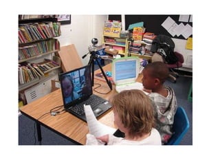 The document discusses the characteristics and learning habits of today's "Net Generation" students ages 8-18. It notes that these students spend much of their free time engaged with digital media and online activities like social networking, gaming, and creating content. It advocates for educators to incorporate more collaborative, creative, and technology-enabled learning approaches into the classroom to better prepare students for the future. These include having students create videos and podcasts, work together on online projects, and publish their work digitally.