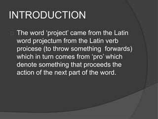 This document discusses project management. It defines a project as a combination of interrelated activities with well-defined objectives to be completed within a specific time period. Project management is then defined as the application of knowledge, skills, tools and techniques to project activities to meet requirements and achieve objectives within constraints. The document outlines the importance of project management and some benefits such as clear work descriptions and timely problem identification.