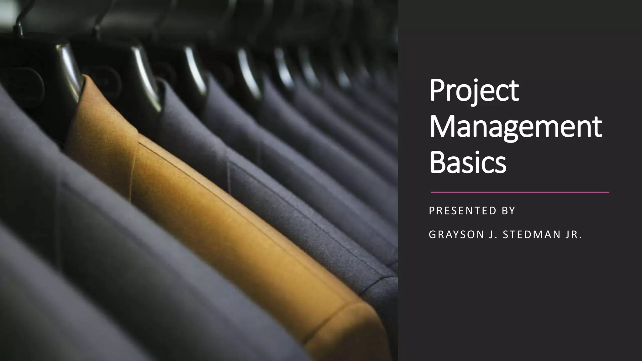 Project management involves initiating, planning, executing, monitoring and controlling, and closing projects to achieve goals within constraints of scope, time and cost. It entails defining objectives and deliverables, creating detailed plans, implementing the plans, overseeing tasks and metrics, and closing out projects upon completion. Key aspects of project management include establishing a work breakdown structure and schedule to define tasks and durations, creating a budget to estimate and control costs, and managing risks and other areas to ensure projects are completed successfully.