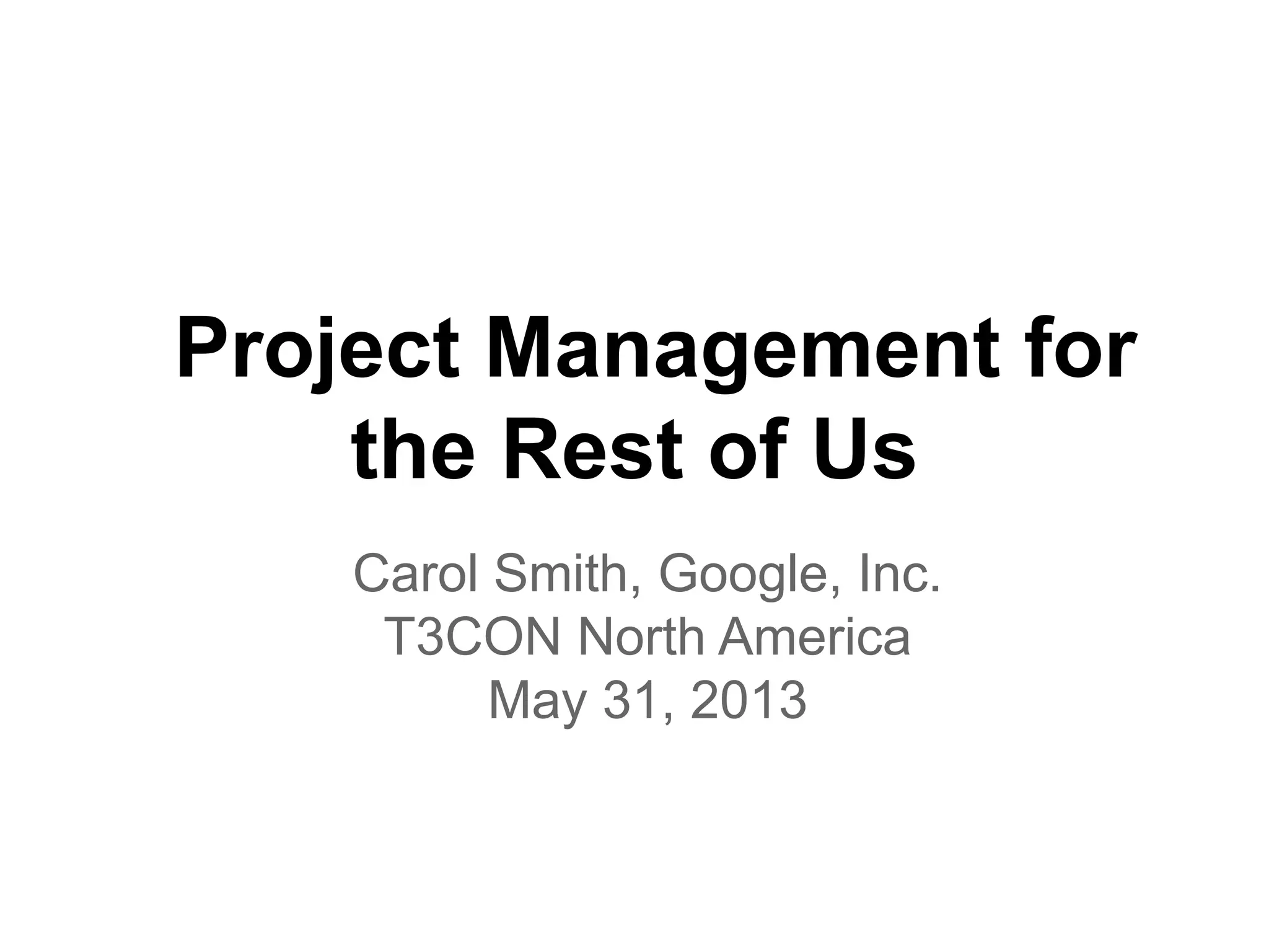 The document is a presentation about project management for non-traditional project managers. It argues that project management is simply a system for organizing tasks and persuading people to complete work. The presentation recommends focusing on understanding the goals and priorities of a project, communicating openly with team members, and making sure people are interested and motivated in their work, rather than getting bogged down in detailed plans and schedules. Project management, it concludes, is a way to effectively organize one's life and collaborate with others.