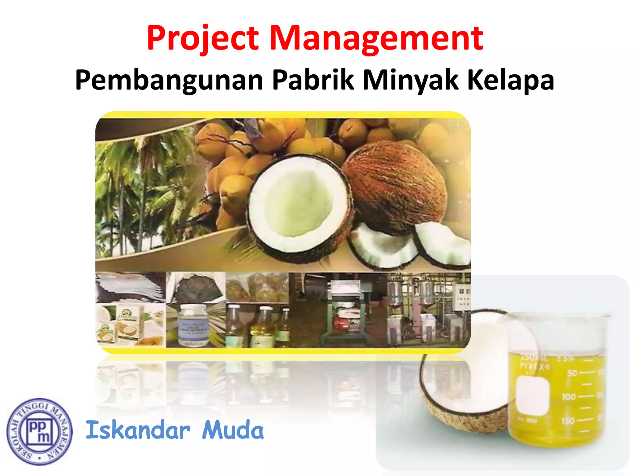 Proyek pembangunan pabrik minyak kelapa di Malingping-Bayah (Lebak) untuk menyerap hasil kelapa petani dan meningkatkan nilai produk. Proyek ini membutuhkan pengurusan izin, pembangunan pabrik, pengadaan mesin, dan penyiapan tenaga kerja dalam waktu 6 bulan."