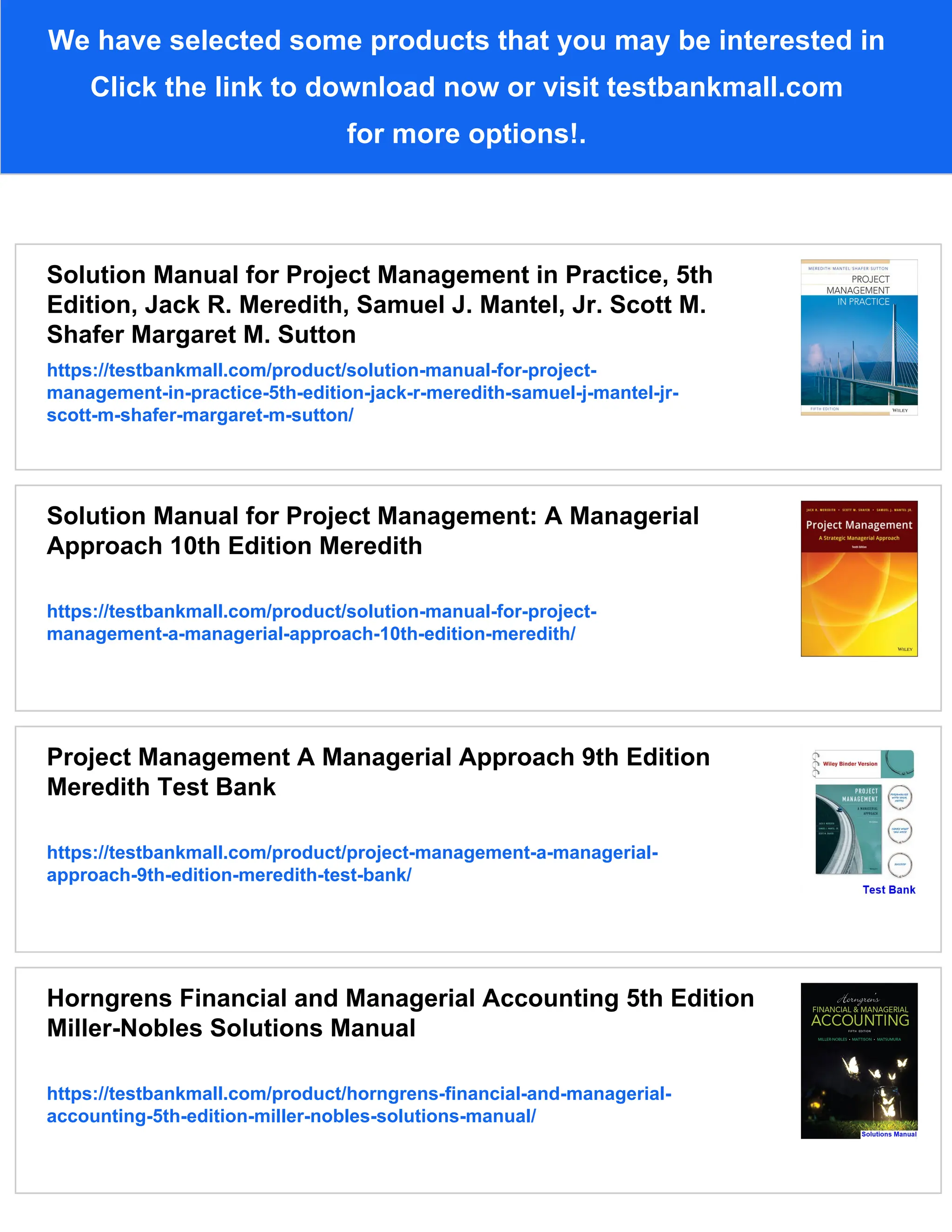 Project Management in Practice 5th Edition Meredith Solutions Manual