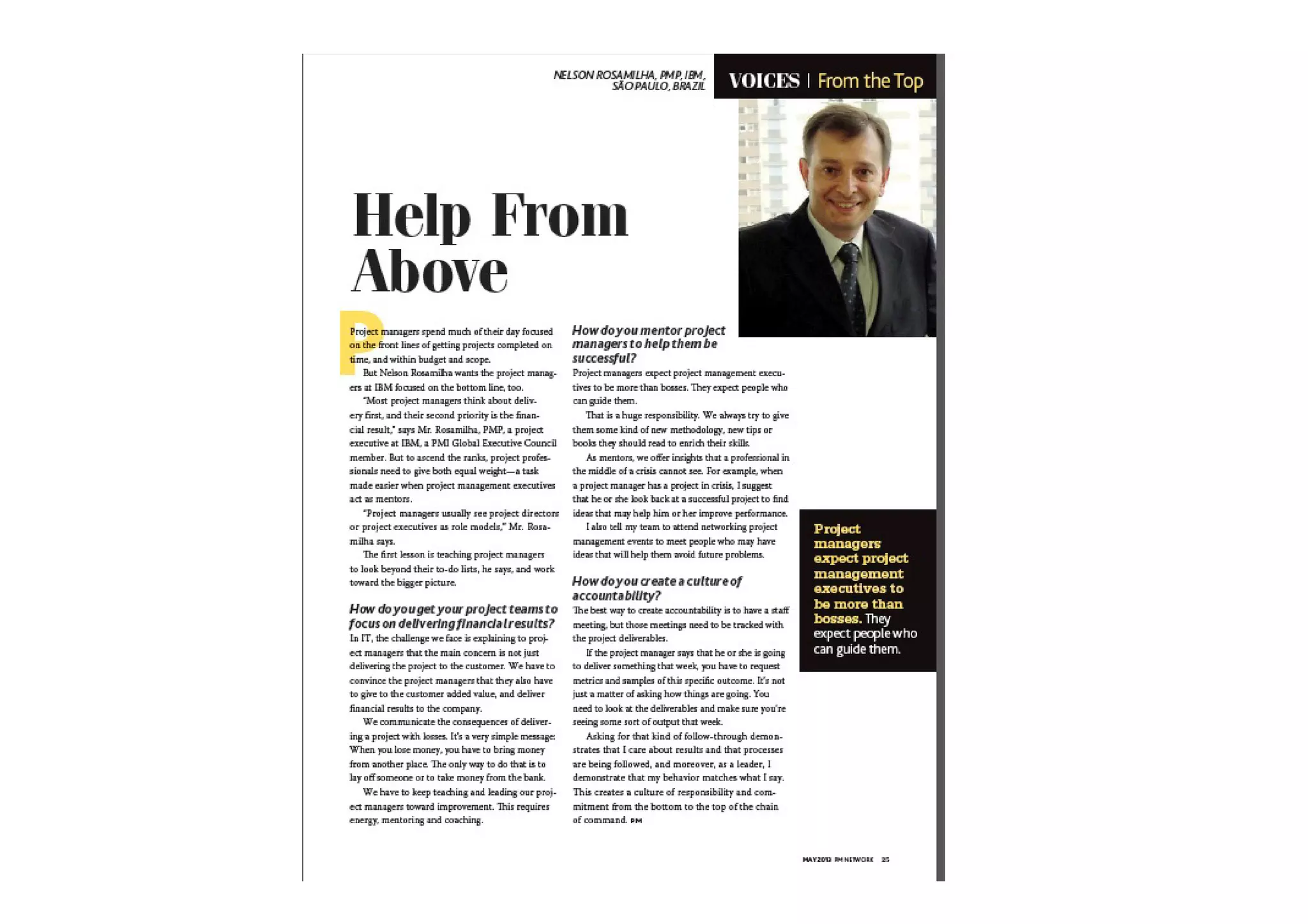 Help from above, an interview provided to Project Management Network Magazine on May/2013, which talks about the relationship among Project Director, Execuvite Board, Customer and PMP