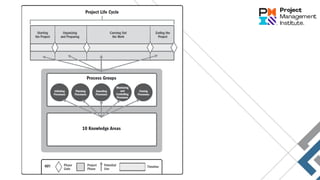 The document presents a comprehensive overview of the Project Management Institute's (PMI) approach to project management, emphasizing the PMBOK® Guide 6th Edition. It details essential concepts such as project management processes, the role of project managers, and the importance of structured project management in achieving organizational goals. Additionally, it covers the benefits of effective project management and the distinctions between projects, programs, and portfolios.