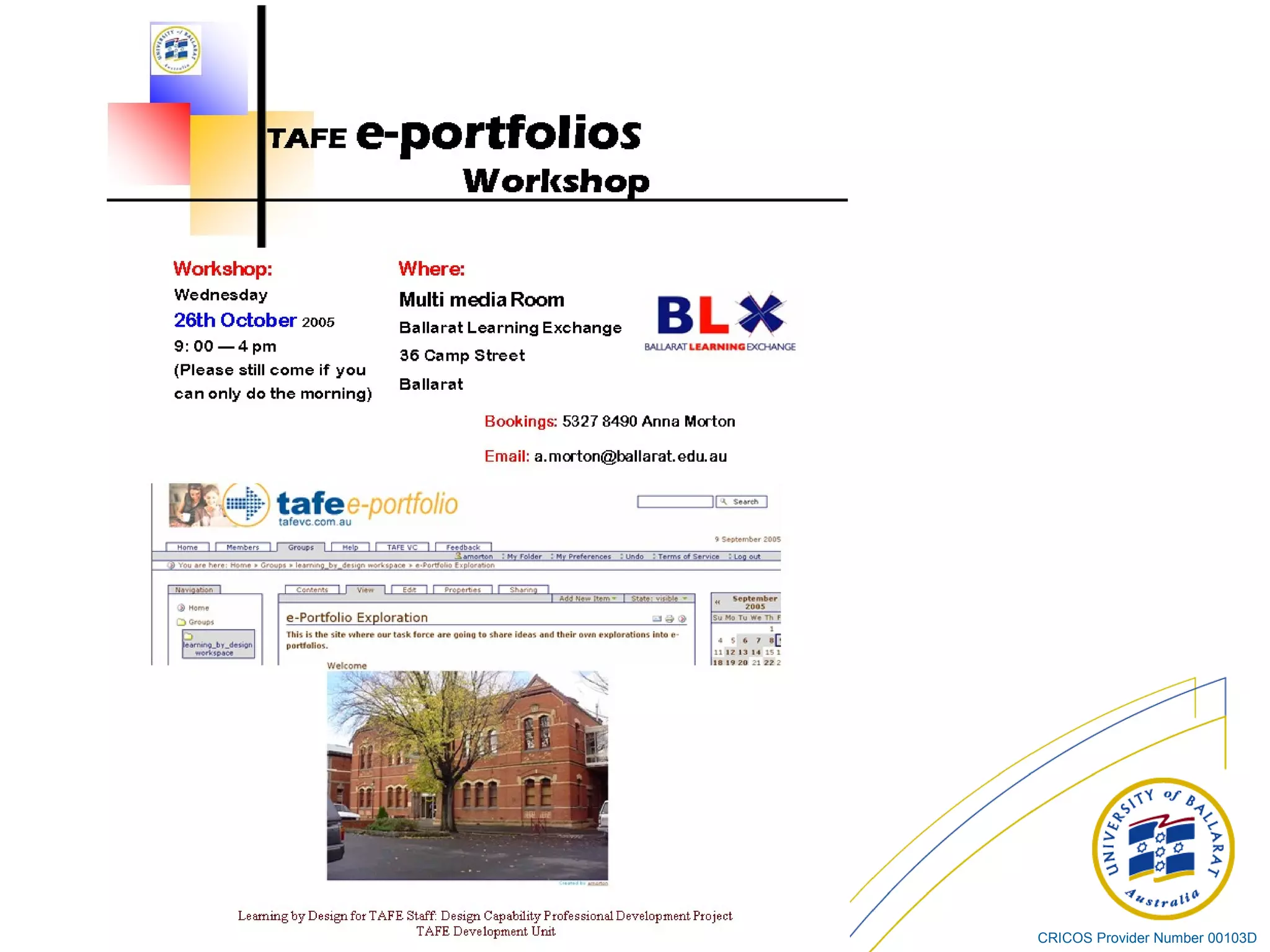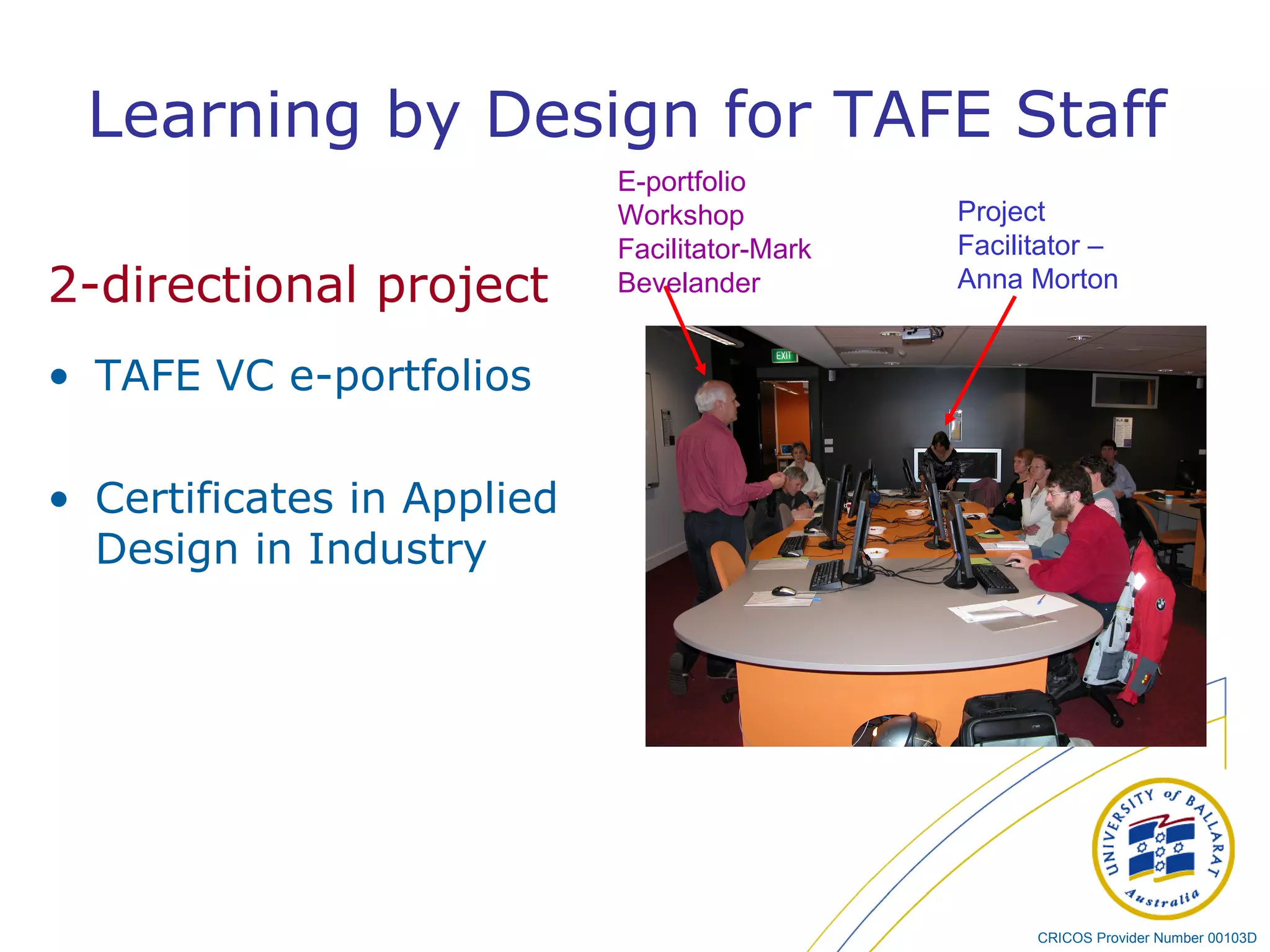 - A workshop on Certificates in Applied Design Industry for TAFE staff from various departments