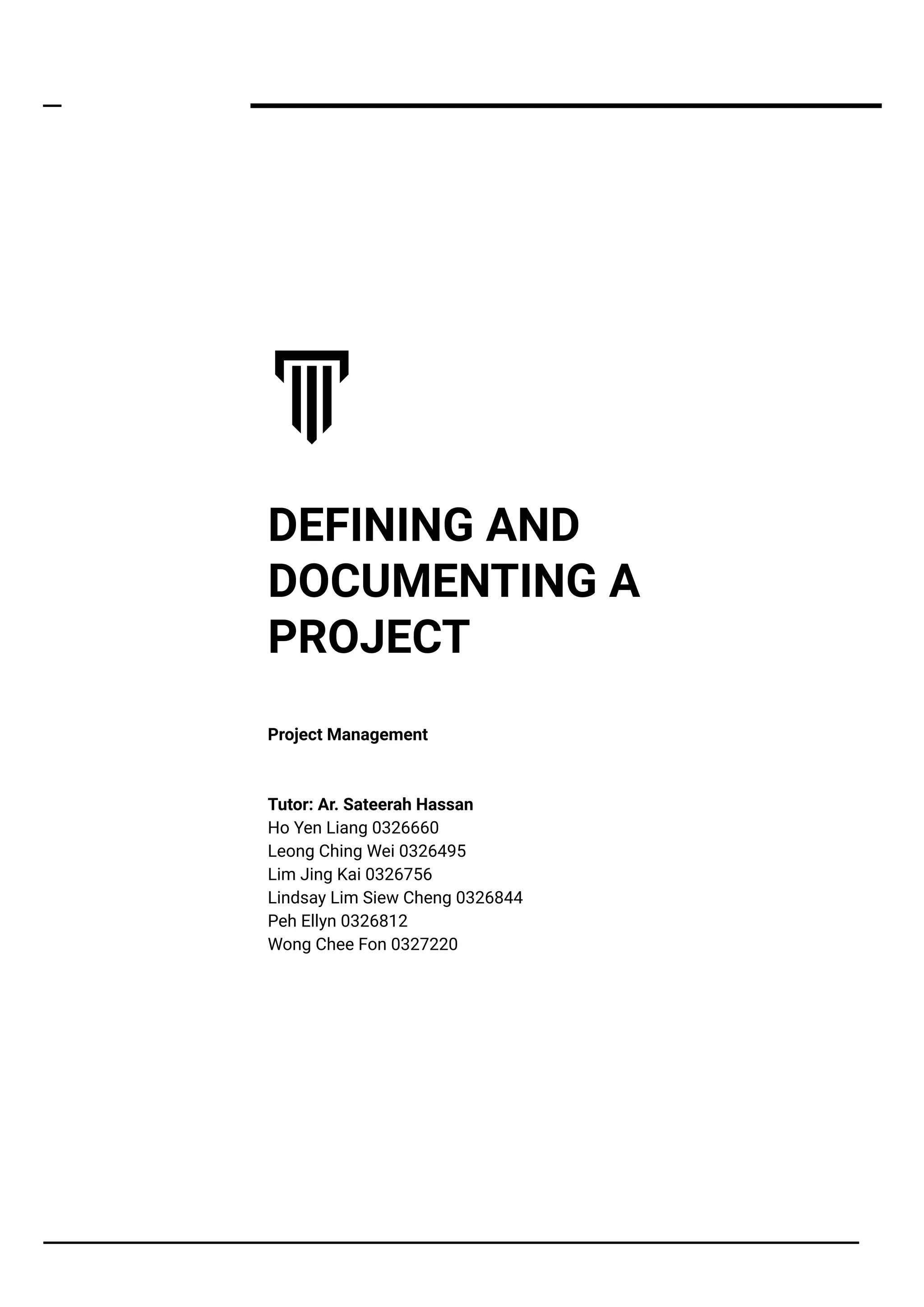 The document provides details about the OnePark residential project in Semenyih, Selangor, Malaysia. It discusses the project introduction, objectives, scope and goals. It identifies key stakeholders such as the client, architect, contractors, engineers and regulatory bodies involved in the project. It outlines the project organization structure and roles and responsibilities of various project team members, including the architect, quantity surveyor, land surveyor, and contractor responsible for implementing different phases of the project from design to completion.