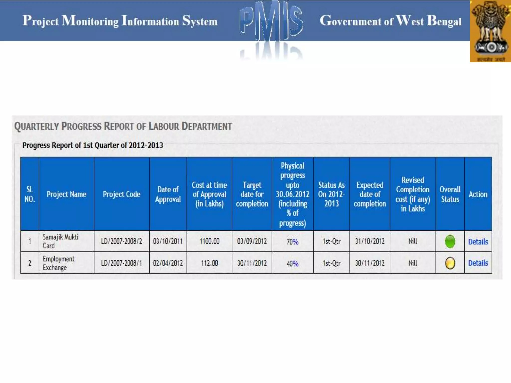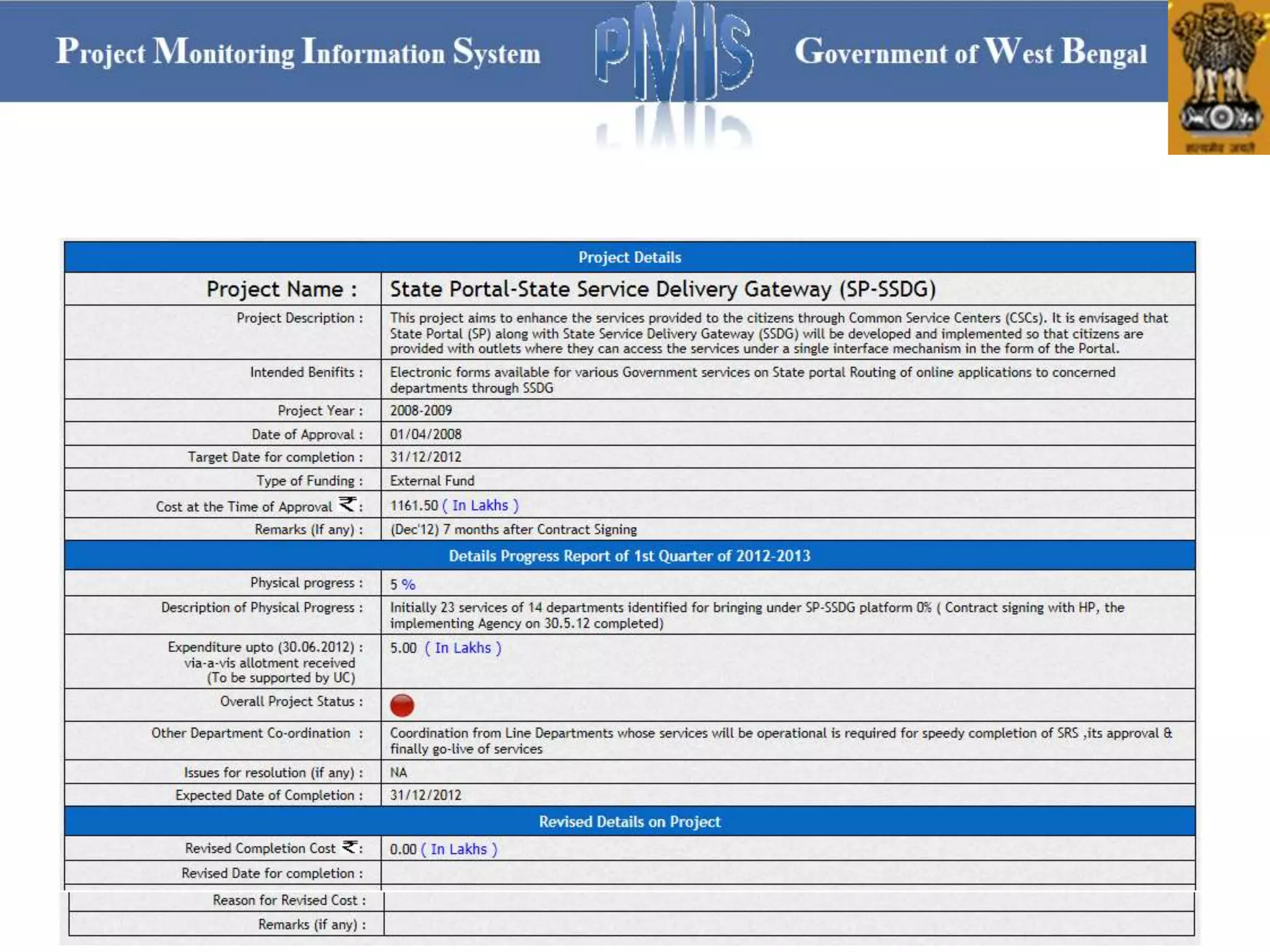 This document provides an overview and proposed enhancements to the Project Monitoring Information System (PMIS) used by the Government of West Bengal. The current PMIS allows for centralized monitoring of projects. Proposed enhancements include improved dashboards to view overall project status by department or criticality, notifications for missed updates, ability to specify project phases and periodicity of updates, and enhanced reporting. The goals are to increase transparency, accountability, and good governance in monitoring development projects.