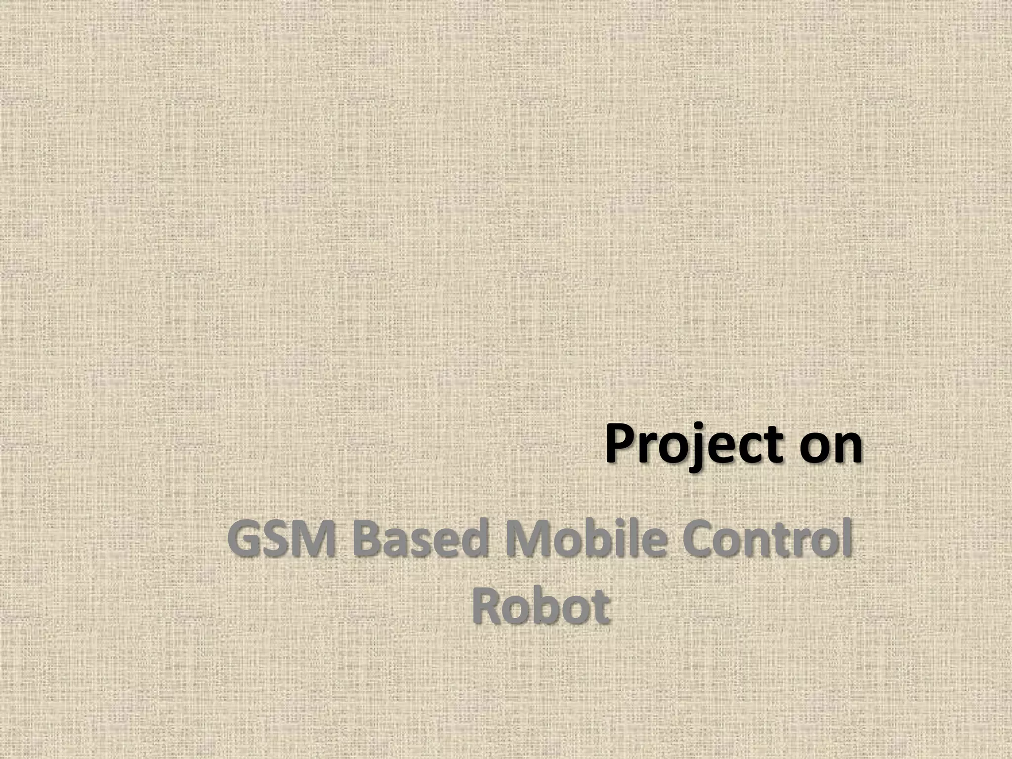 The document details a project on a GSM-based mobile control robot that utilizes phone calls to manipulate the robot via keypad tones, offering advantages like faster operation and a wider range compared to RF-controlled robots. It can serve multiple functions such as rescue missions and surveillance, with the potential for future enhancements including various sensors and a robotic arm. The project outlines the circuit components and suggests further developments to increase its utility.