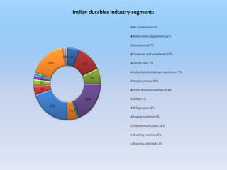 IFB is an Indian appliance manufacturer with a strong brand in home appliances. It has a wide product range including washing machines, microwaves, and dishwashers. While IFB has strengths in brand, innovation, and service, it also faces challenges from low-cost imports and rising material costs. The analysis examines IFB using Porter's five forces, PEST, SWOT, and other frameworks to understand opportunities for growth and threats in the competitive market.