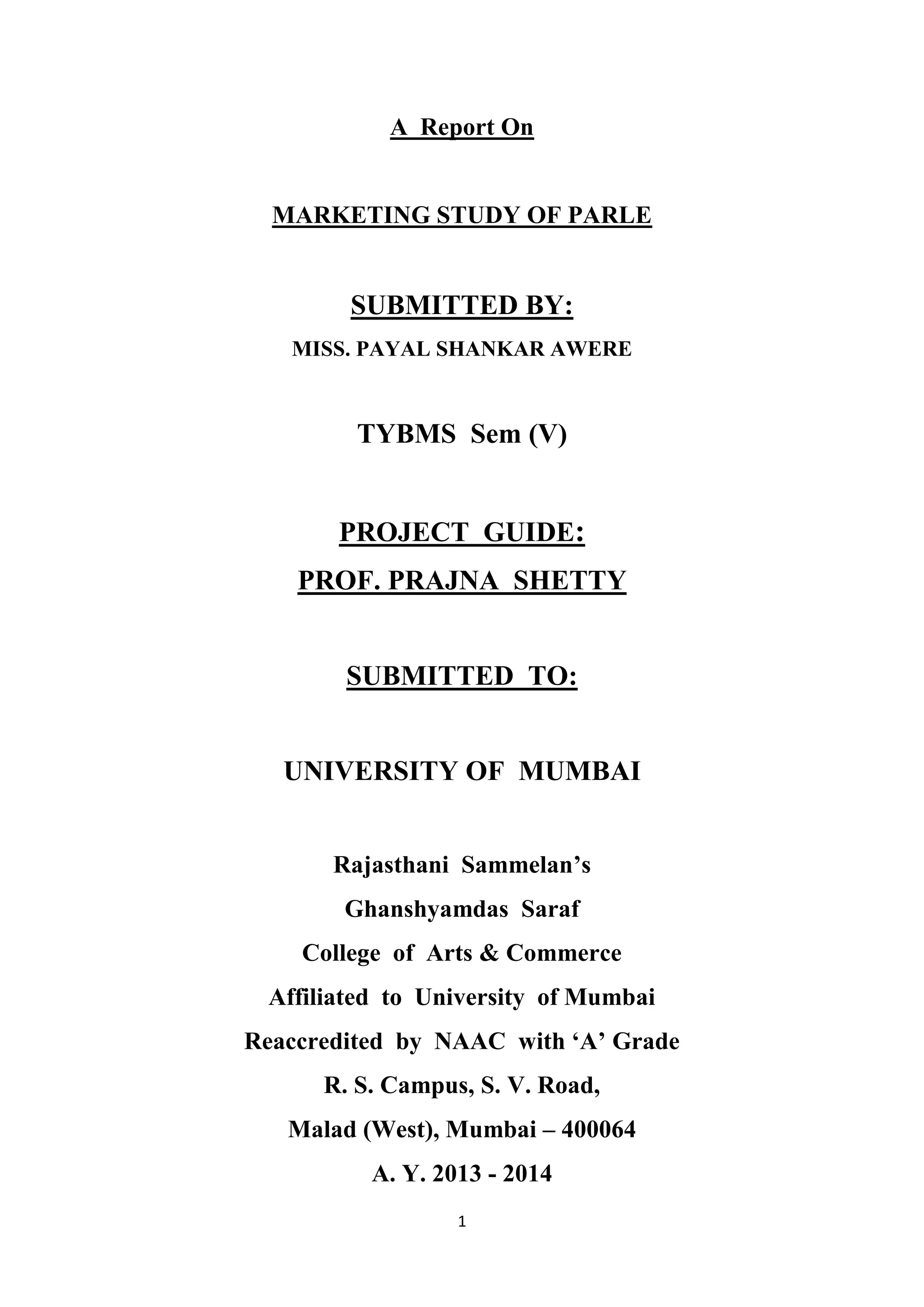 This document provides information about a marketing study conducted on Parle biscuits. It includes an executive summary of the study which examined Parle's distribution system and promotional tools. It identified issues and recommendations for improvement. The document outlines the objectives of the study which were to understand Parle's marketing strategy and examine consumer preferences and competitive activities through retailer surveys. It then describes the research methodology used, including primary and secondary data collection methods.