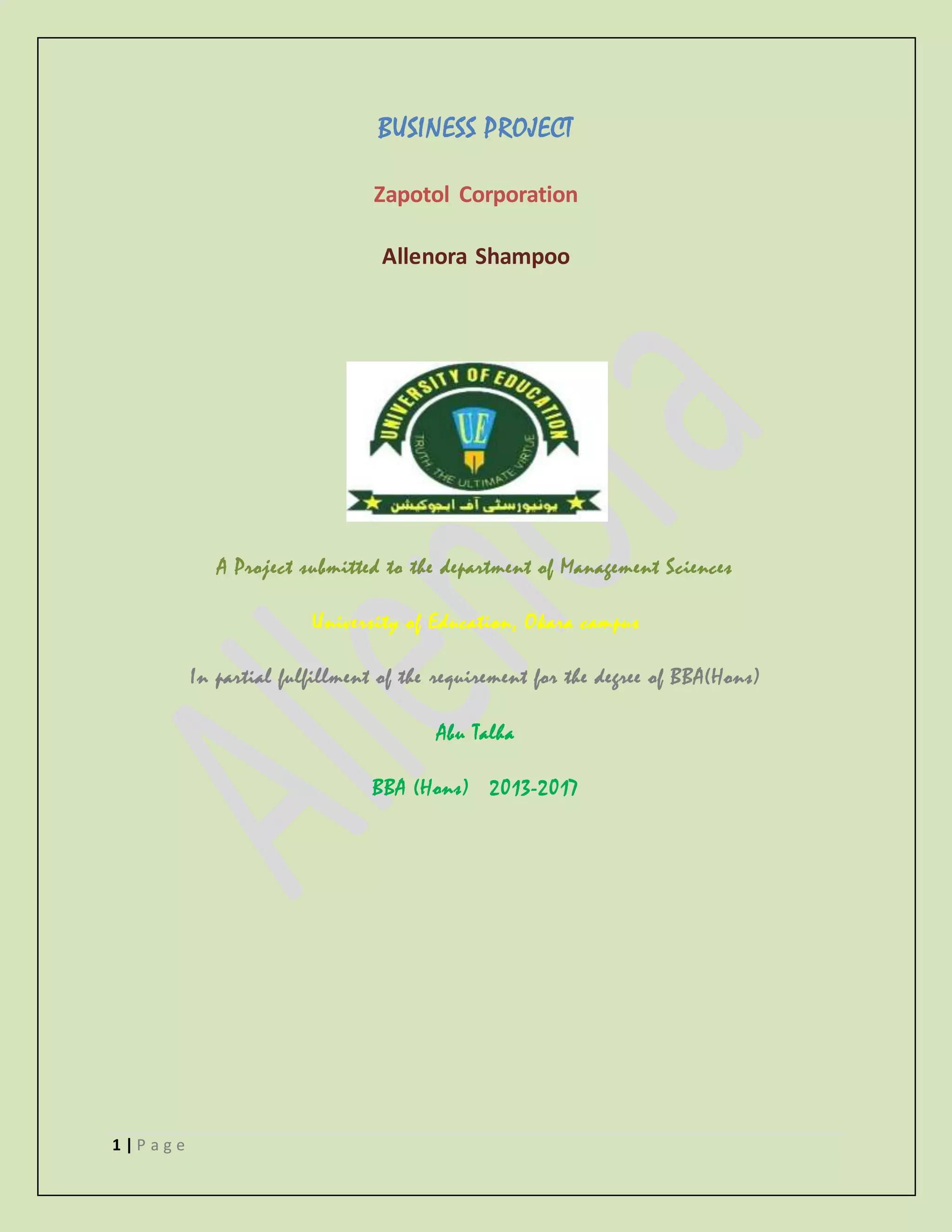 Zapotol Corporation is launching a new shampoo brand called Allenora in Pakistan. Allenora will be a 7-in-1 shampoo addressing issues like hair fall, dryness, dullness, roughness and dandruff. It will be available in 100ml, 200ml and 400ml bottles as well as sachets. The company aims to become a strong shampoo brand in Pakistan within 5 years. Key competitors in the market include Head & Shoulders, Sunsilk, Pantene and Clear. The shampoo market in Pakistan is growing and valued at Rs.12.5 billion, with Unilever and P&G being the major players.
