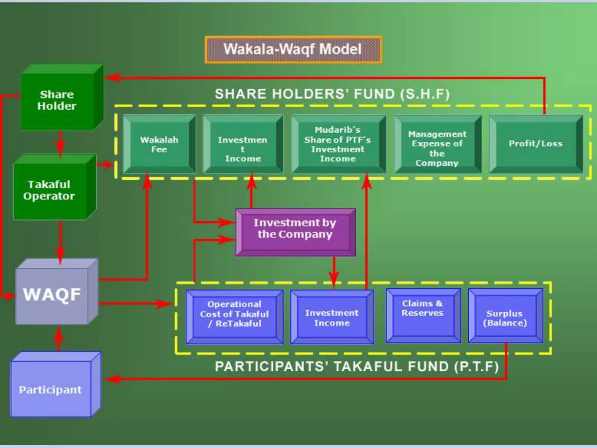 3. Details on the various models of Takaful including Mudarabah (profit-sharing), Wakala (agency with fees), and hybrid models.