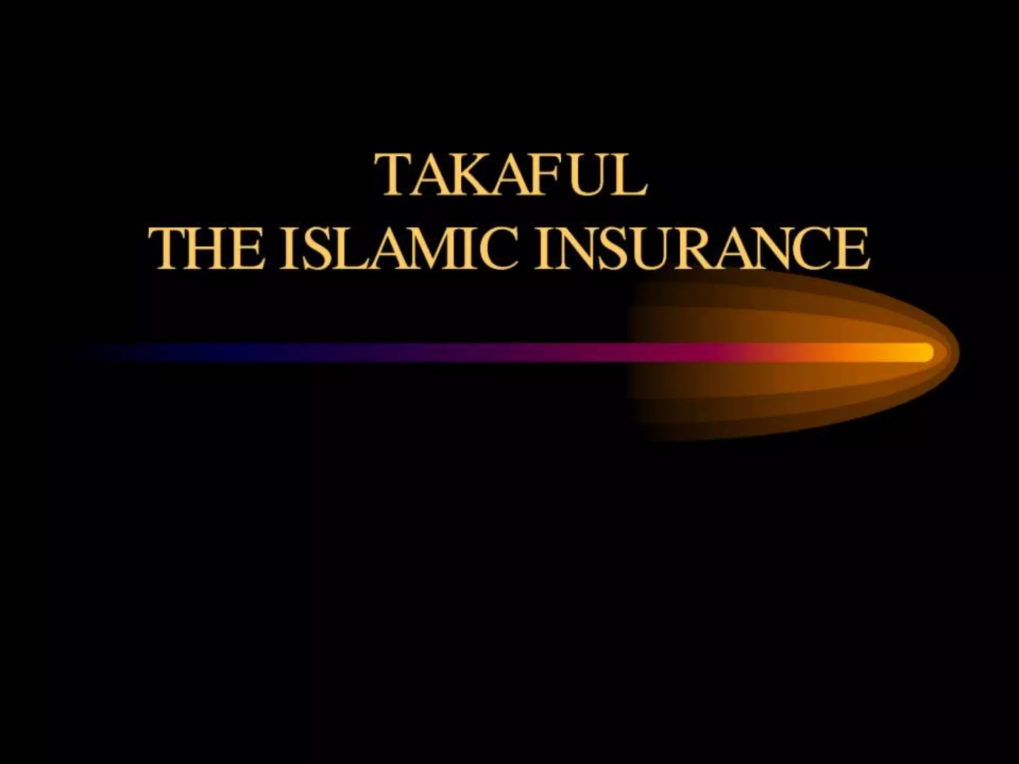 The document outlines a presentation on Takaful (Islamic insurance). It includes: