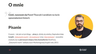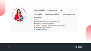 Czym jest Personal Branding i jak zacząć go tworzyć? Przykłady osób, których strategia personal brandingowa się sprawdziła. Czego można się nauczyć od tych osób? Jakie kanały marketingowe wykorzystać do prowadzenia swoich działań personal brandingowych? Zobacz prezentację i zapisz się do naszego newslettera po dodatkowe materiały! Project: People to agencja Lean Strategy założona przez Beatę Mosór-Szyszkę i Joannę Ostafin w 2016 roku. W ciągu zaledwie 4 lat mieliśmy przyjemność współpracować z ponad 160 klientami na całym świecie (np. Niemcy, Wielka Brytania, USA, Singapur, Wenezuela) i zbudowaliśmy rozpoznawalność zarówno wśród korporacji, jak i startupów. Jako agencja strategiczna zajmujemy się tworzeniem strategii biznesowych i marketingowych, digital marketingiem oraz UX i UI . Pomagamy naszym klientom zdefiniować ich strategię działania. Paulina Drygała - Zakochana w formie warsztatowej i partnerskim podejściu do współpracy z klientem. Specjalizuje się w działaniach personal brandingowych oraz strategicznych. Świetnie odnajduje się w projektach Lean Startupowych, które prowadzone są w warunkach skrajnej niepewności, bez jasno określonej wizji końca. Paulina jest również specjalistką od content marketingu. Wspiera klientów w procesie tworzenia treści w oparciu o strategię marketingową. Prowadziła warsztaty z zakresu personal brandingu m.in. podczas PRCamp.