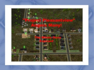 The document summarizes the major changes that have occurred in Pleasantview as part of "Project Pleasantview", including various Sims' reactions. It describes how the town has been transformed from a suburban to an industrial area and all Sims from different neighborhoods have been consolidated into Pleasantview. Many Sims are unhappy with the changes and their new living situations, though some accept it or find benefits. The changes were orchestrated by the Grim Reaper to more easily track and transport Sims.