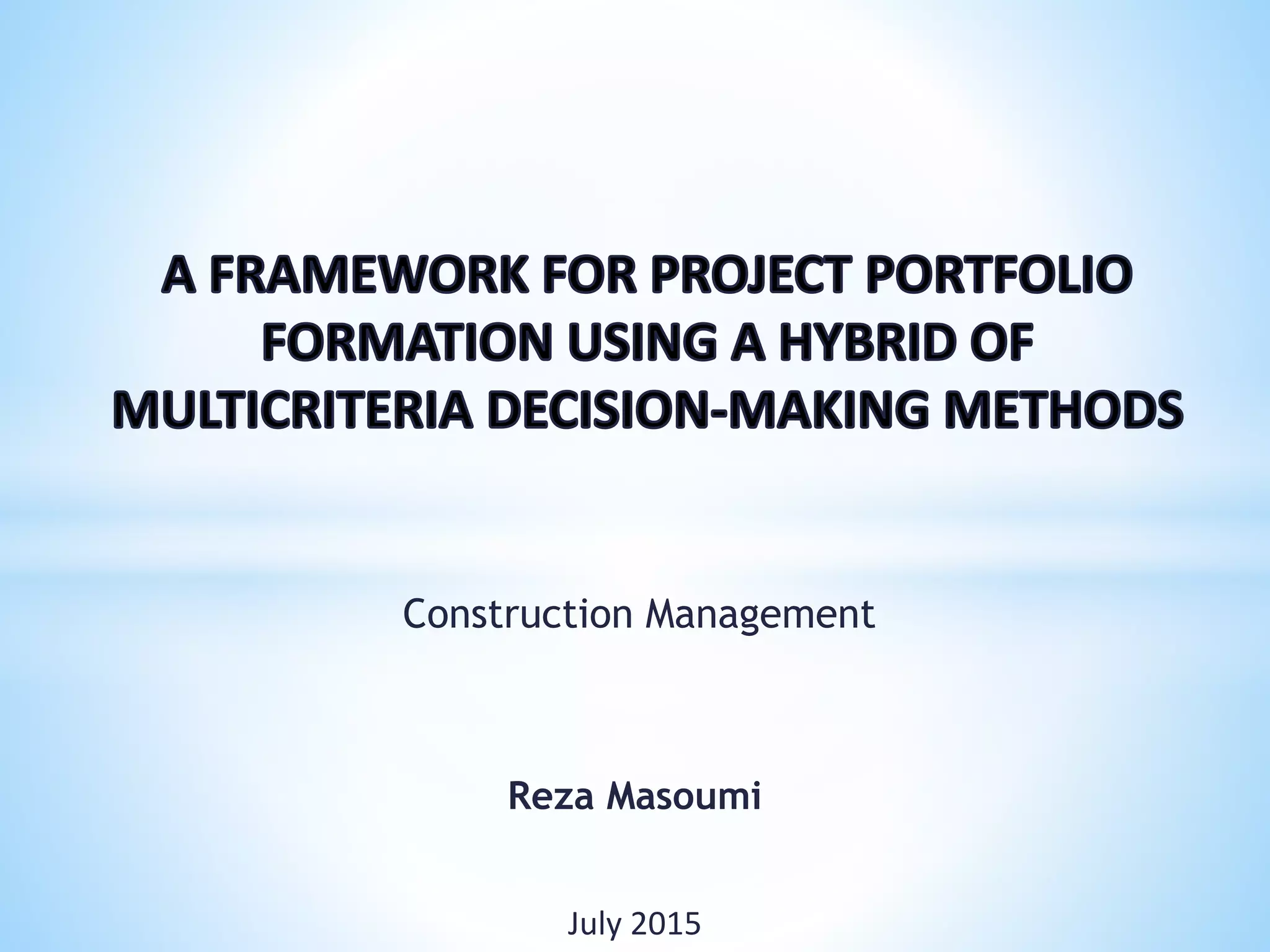 The document outlines a systematic approach for project portfolio formation, emphasizing the prioritization and selection of projects under budget constraints to achieve organizational goals. It discusses a research methodology that identifies gaps in existing practices and recommends tools for effective portfolio management while analyzing barriers to implementation. The framework incorporates balanced risk assessment and decision-making methods to create optimized project portfolios aligned with strategic objectives.