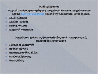 Ιστορική αναδρομήστην μέτρηση του χρόνου. Η έννοια του χρόνου στην