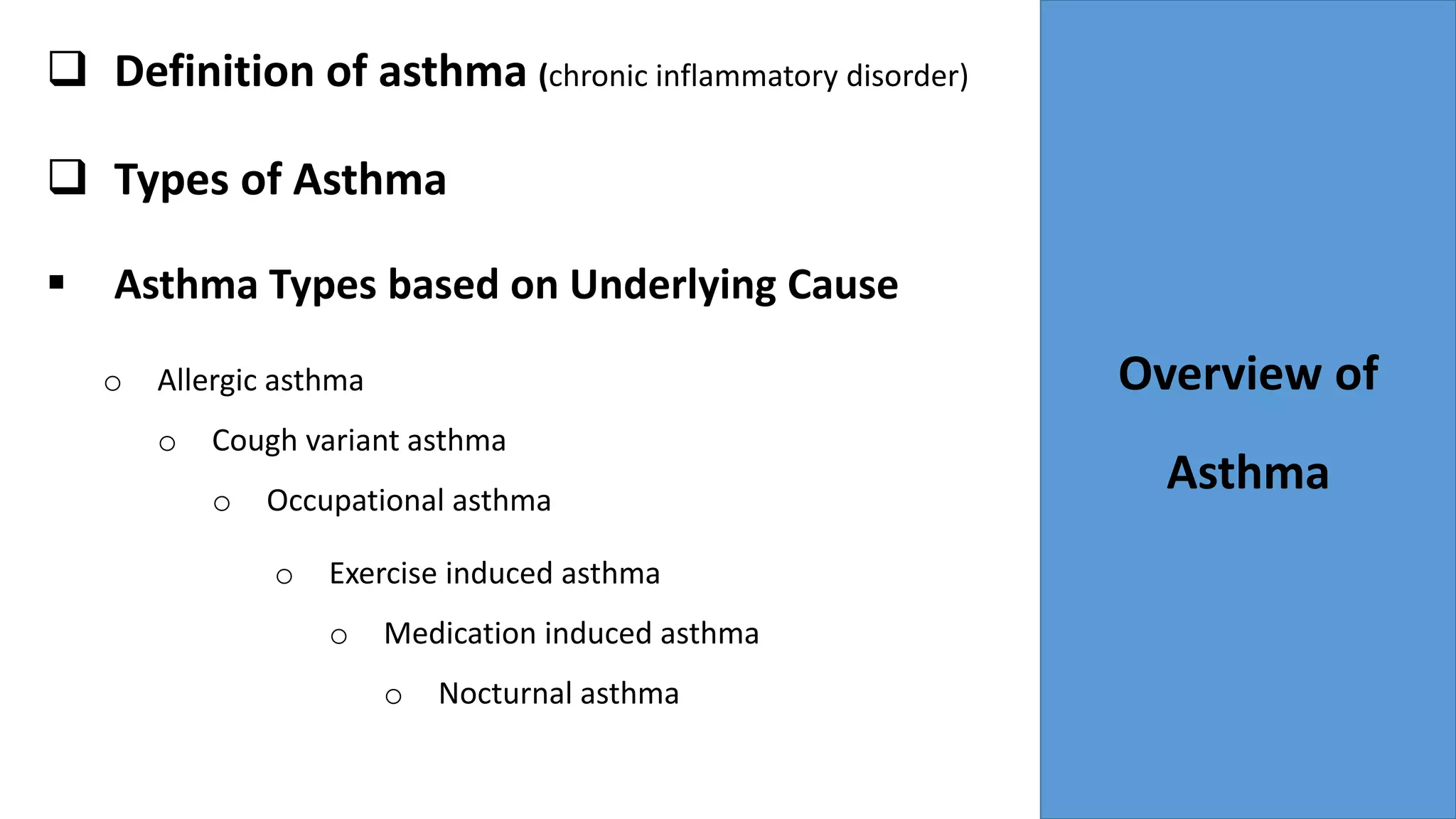 This document defines asthma as a chronic inflammatory disorder and discusses different types of asthma classified by underlying cause, severity, and method of control. It outlines the mechanisms of acute and chronic inflammation in asthma and phases of the disease progression over time. It also describes various classes of anti-asthmatic drugs classified by duration of therapy and mechanism of action, including corticosteroids, bronchodilators, mast cell stabilizers, and leukotriene receptor antagonists. Finally, it presents data on the prevalence and incidence of asthma among patients in Bangladesh based on geographic region, gender, and age.