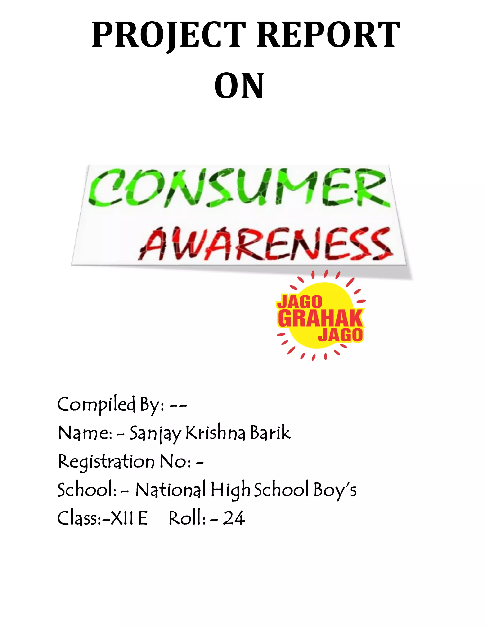 The project report authored by Sanjay Krishna Barik focuses on consumer awareness and the Consumer Protection Act of 1986, examining consumer exploitation methods and recommending consumer vigilance in checking product quality. The report includes a survey analyzing consumer behaviors regarding product purchases, with findings showing a significant reliance on expiry dates and promotional offers, yet a lack of awareness regarding product weights and certifications. Ultimately, it highlights the importance of consumer rights and responsibilities in making informed decisions.