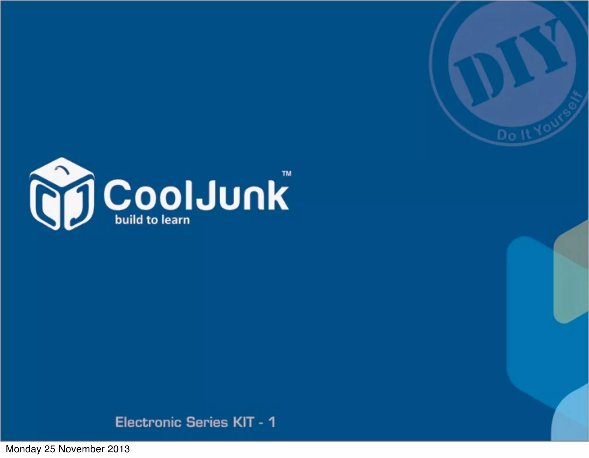 This document describes an experiment to learn how a diode works. It is conducted in two phases. In phase 1, the basic functioning of a diode is observed by connecting a diode, LED, resistor and battery in a circuit. It is observed that the LED lights up only when the diode connections allow current to flow in one direction. In phase 2, a voltage divider circuit is created using a preset resistor to vary the voltage applied across the diode. The current through the diode is then measured at different voltages to plot a graph of current vs voltage characteristics of the diode.