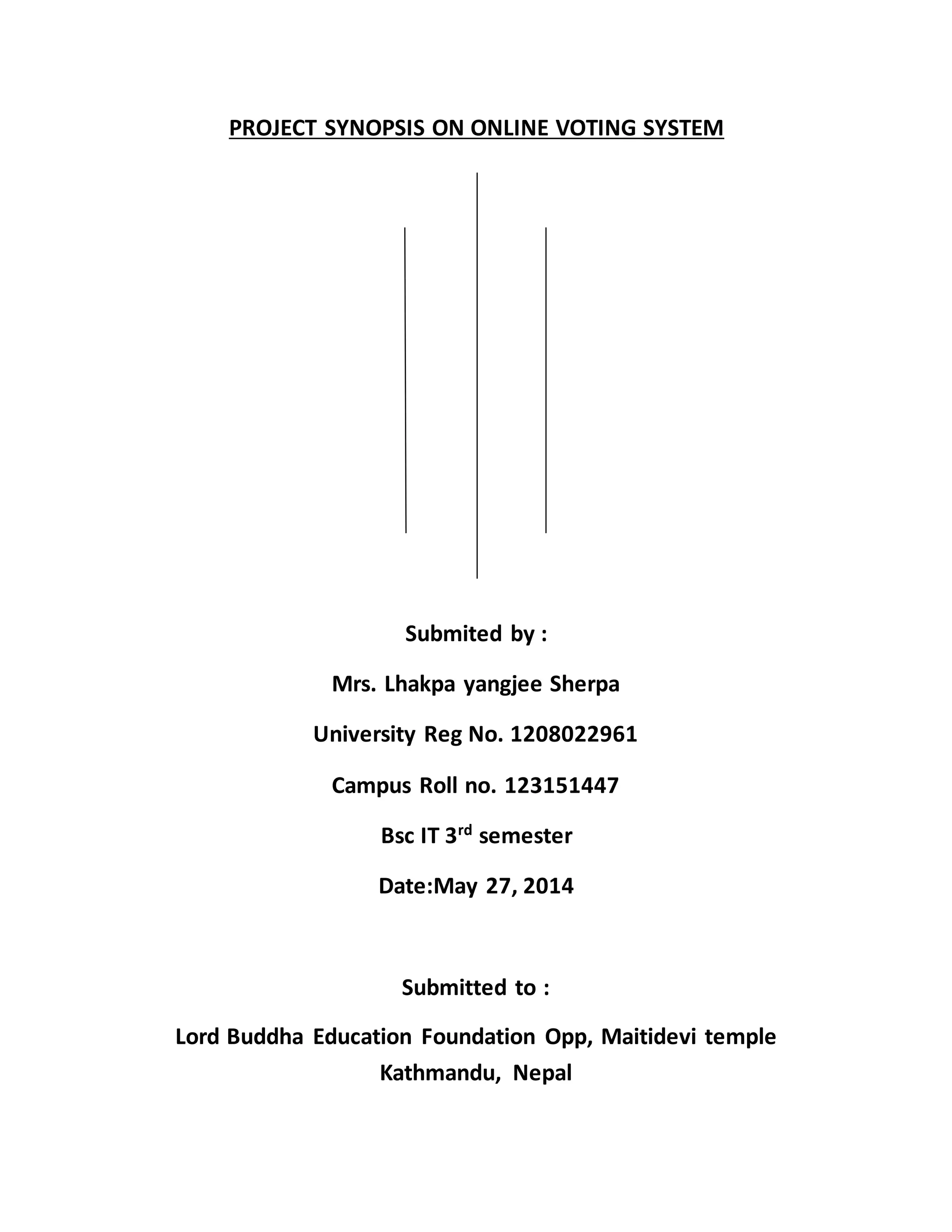 This document provides a synopsis for an online voting system project. It describes the objectives of developing an online system to allow citizens over 18 to vote from home. It notes issues with current physical voting systems like long queues and aims to increase voter turnout with a convenient online option. The proposed system would require voters to register with ID and password in order to securely cast anonymous votes online. The project would develop the necessary software tools like a database, website, and security protocols to implement this vision of online democratic participation.