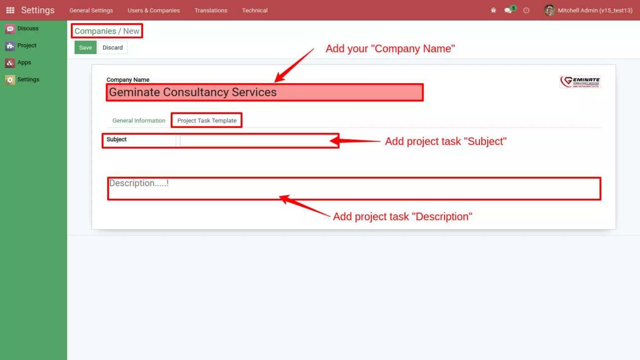 The document outlines a project task template detailing task descriptions, deliverables, and related activities, emphasizing the importance of reviews and testing. It highlights features like auto-generating task names and descriptions, and provides information on compatibility with Odoo Enterprise and support services offered. Additionally, it includes FAQs and instructions for customization requests.