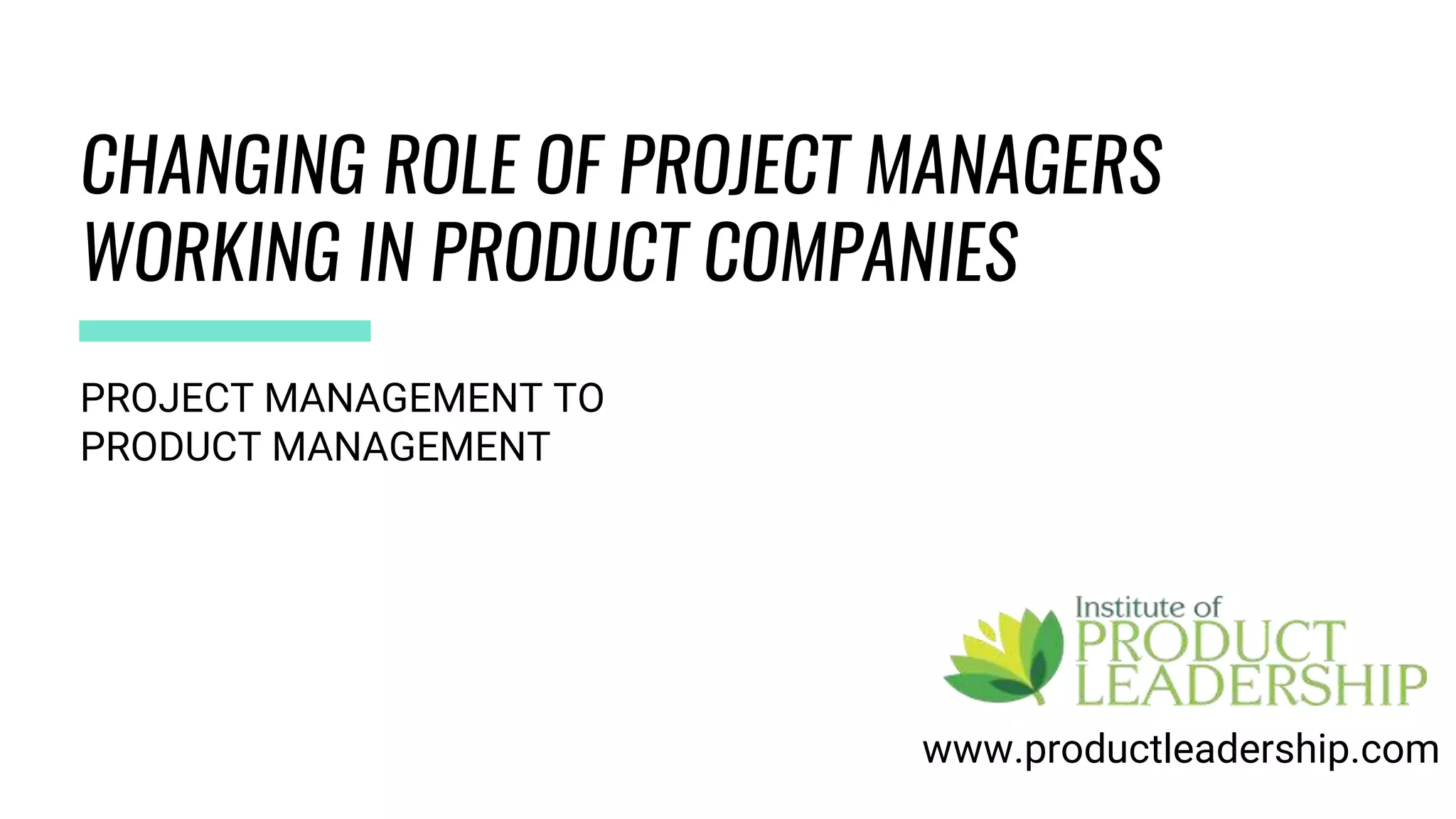The document discusses the evolving role of project managers in product companies, highlighting the shift from traditional project management to product management. It emphasizes the importance of customer experience, design thinking, and skillset transitions, while outlining the competencies required for effective product leadership. Additionally, it provides insights into career paths, the productizing process, and the expectations from product managers in the industry.