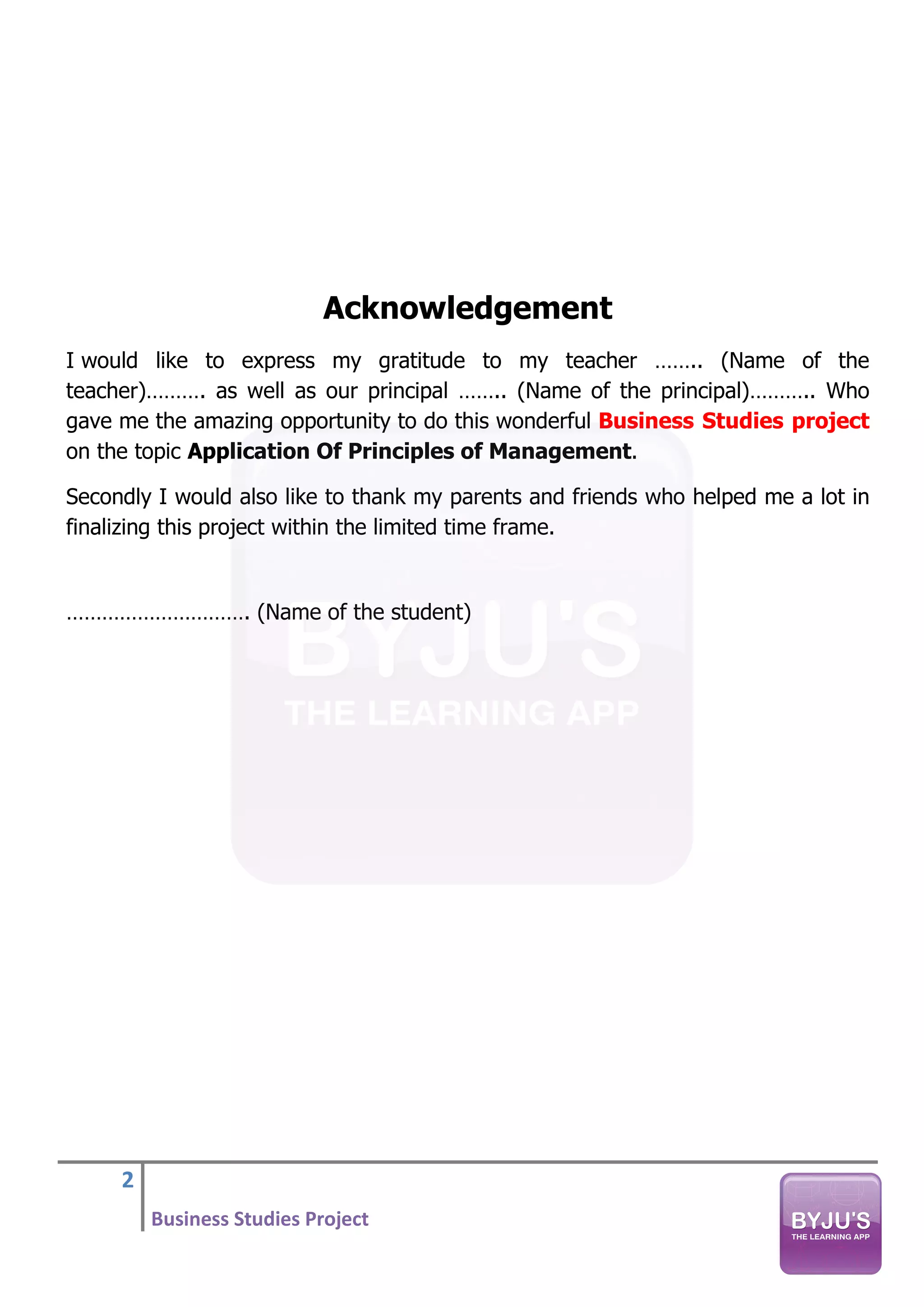This document is a business studies project submitted by a student for class 12. It applies Henri Fayol's 14 principles of management to Cafe Coffee Day. The principles are explained and examples of their application at Cafe Coffee Day are provided, such as work specialization among employees, a clear chain of command, order and cleanliness maintained, and promoting team spirit. The project follows the standard format with an introduction, contents page, chapters on CCD and Fayol, and a conclusion.