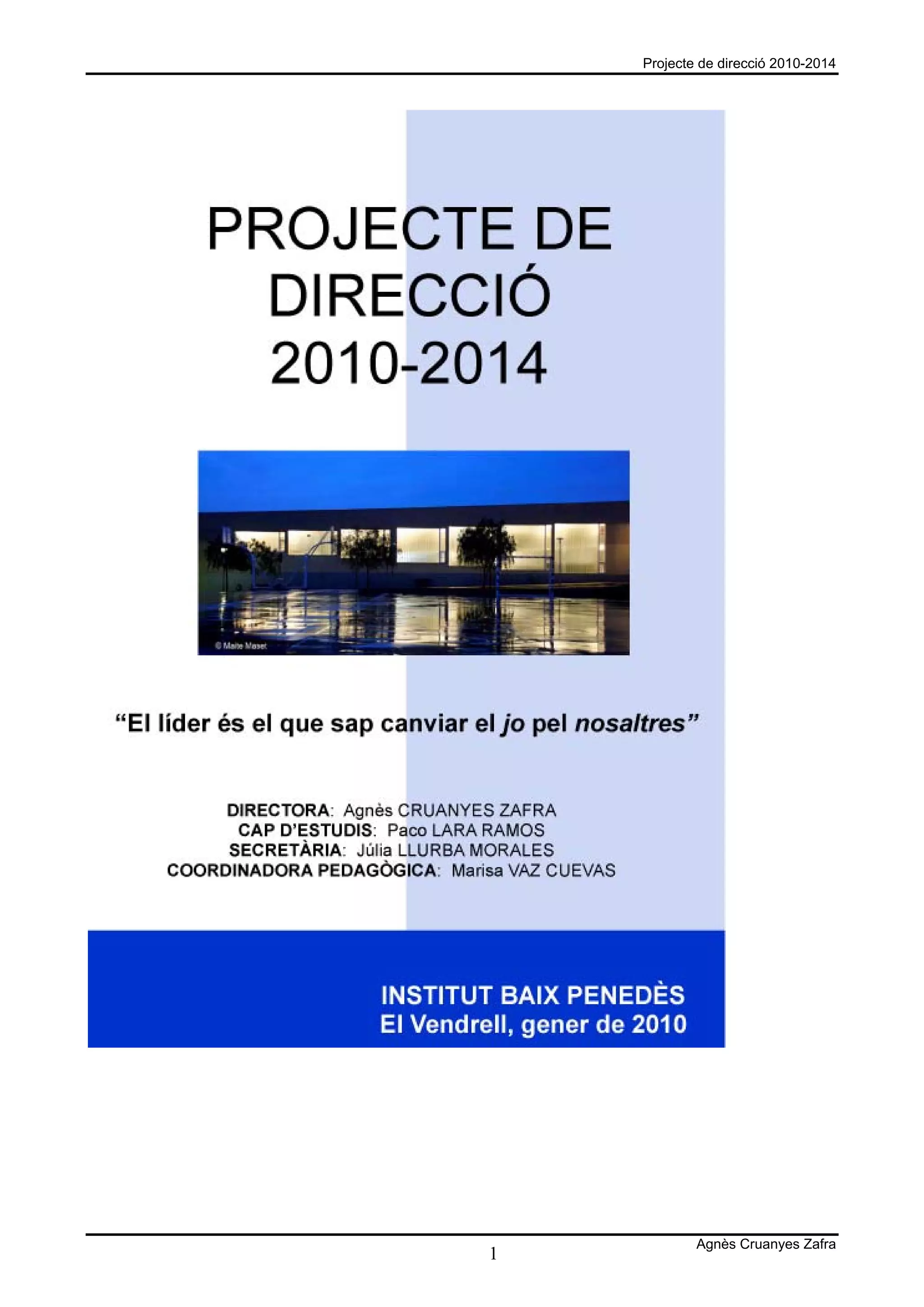 Al llegir la proposta de Projecte de Direcció trobareu moltes expressions en primera persona del plural. Això