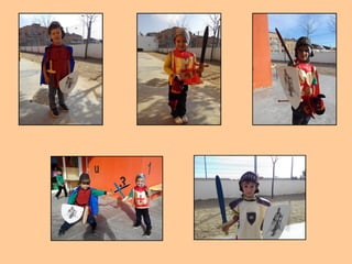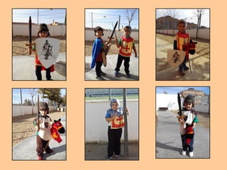 The document discusses knights and princesses in a classroom project. It describes what knights and princesses were traditionally like based on stories - knights rode horses, carried swords and shields, fought in battles to protect castles where princesses lived. It asks questions about what knights and princesses wore, what castles looked like, and what knights did in their spare time. The document then provides some answers, describing knights' armor and weapons, what horses wore, and features of castles like towers and flags.