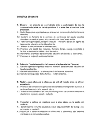 1. Elaborarun projecte de convivència amb la participació de tota la