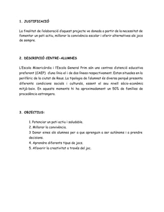 El projectepretén fer un recull d’activitats que es poden fer al pati a disposició de