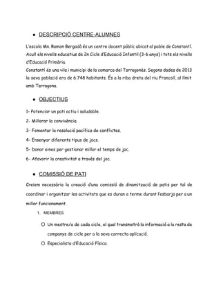 conflictes i actituds violentes entre l’alumnat, també pretenem tenir un pati actiu