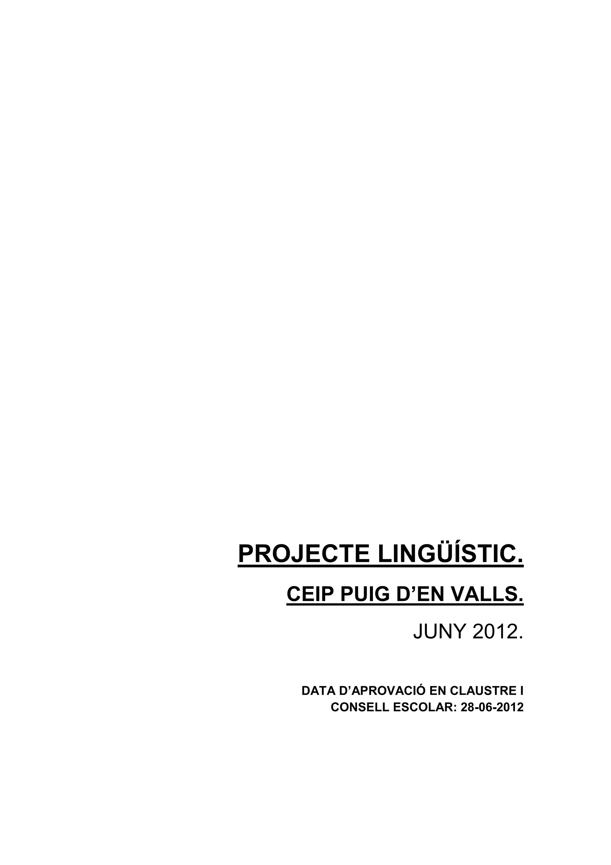 PROJECTE LINGÜÍSTIC APROVAT CONSELL ESCOLAR 28-06-2012