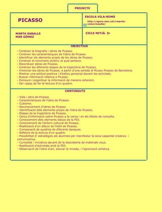 - Cerca d’informació sobre Picasso a la xarxa i en els llibres de consulta.