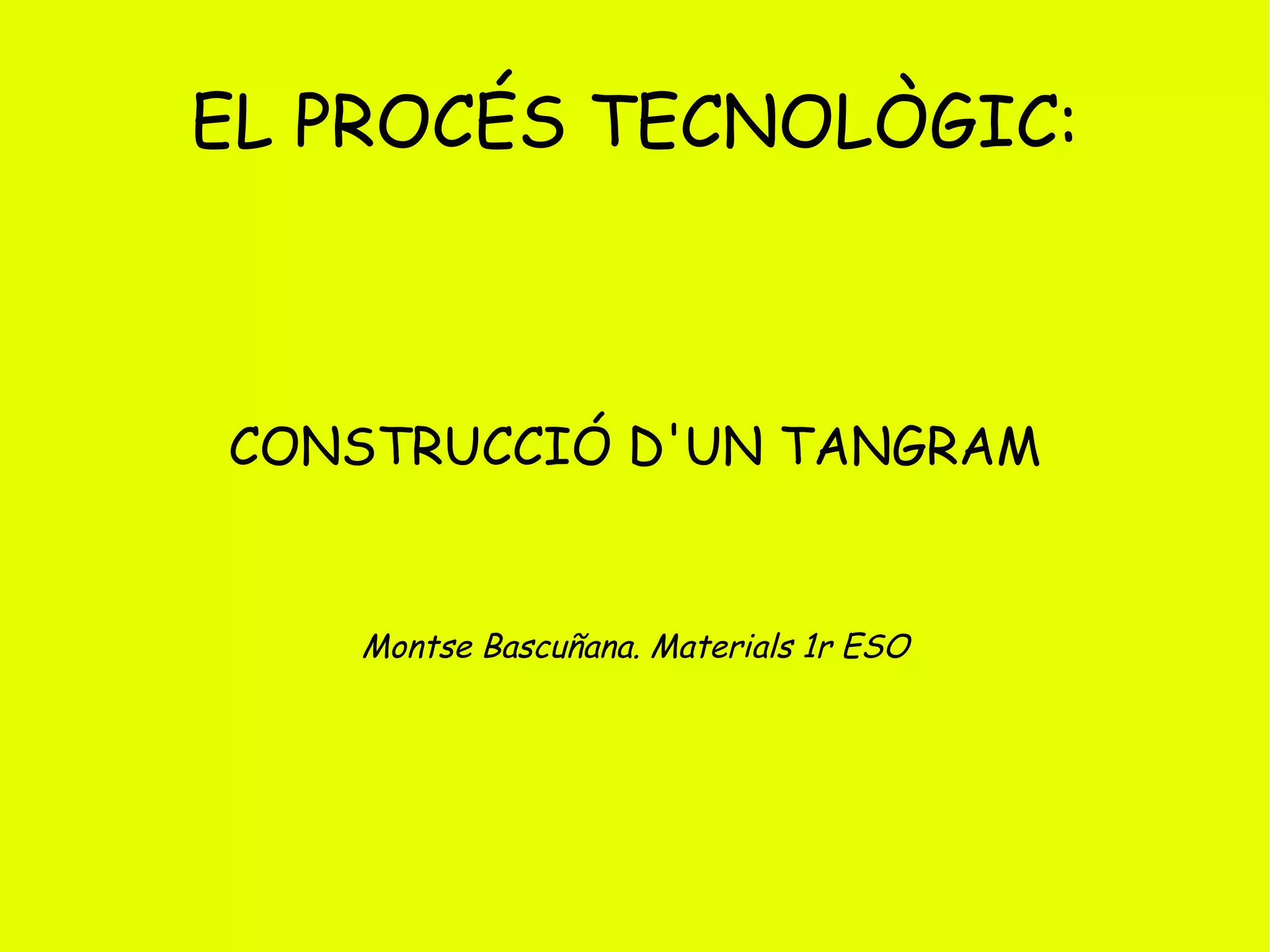 Què és eltangram? El Tangram és un joc xinès molt antic, consistent a formar siluetes de figures amb la totalitat d'una sèrie de peces donades. Les figures formades han d'usar totes les peces sense encavalcar-les ni sobreposar-les.